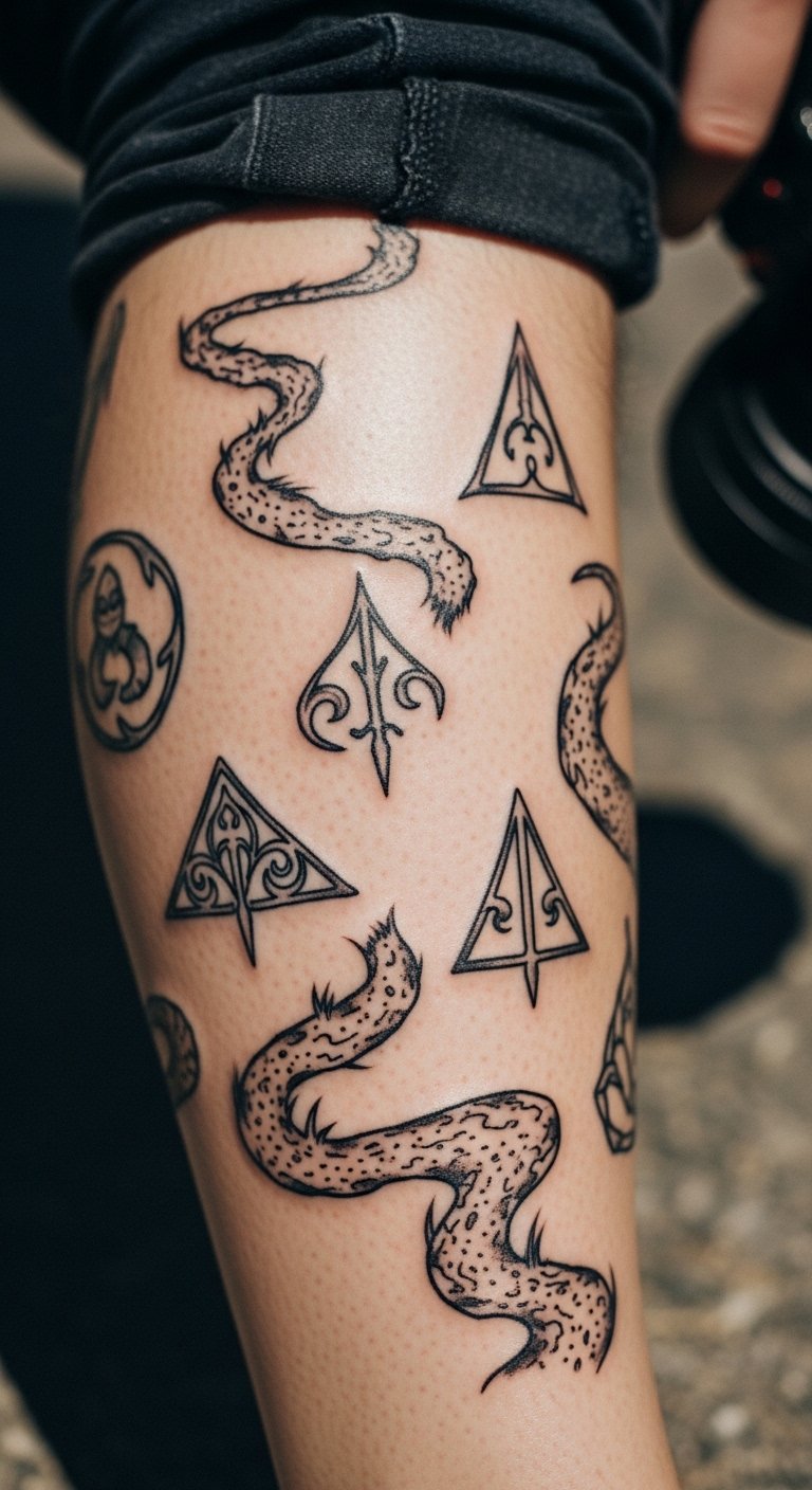 Unique lore elements stand out. Pick lesser-known bits. Research for free online. Sketch obscure designs. DIY tip: Create your own twists. This tattoo shows knowledge and is original.