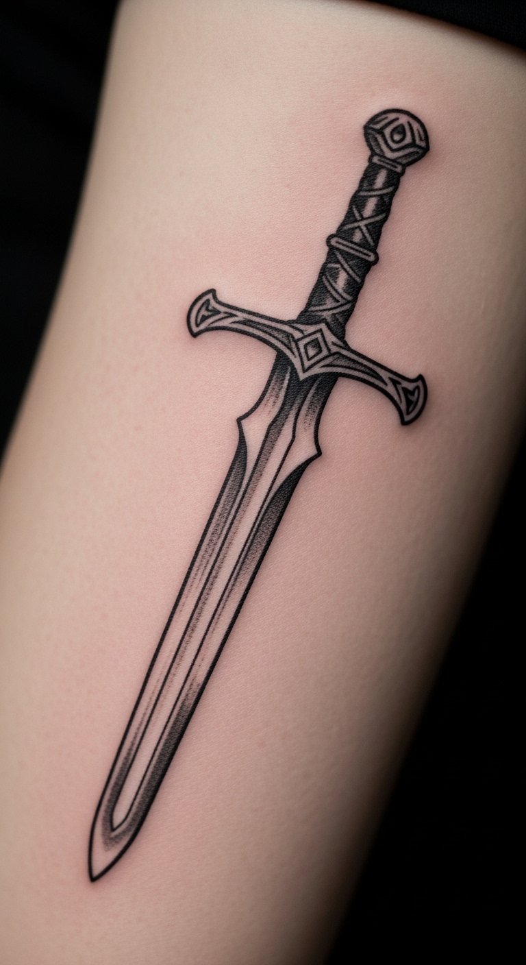 Black ink tattoos offer timeless looks, like a sword. They last without fading fast. Plan with pencil drawings. It’s often cheaper than color. Find basic artists. DIY example: Ink on paper with a pen. This style keeps it classic and easy to touch up. Use home moisturizers.