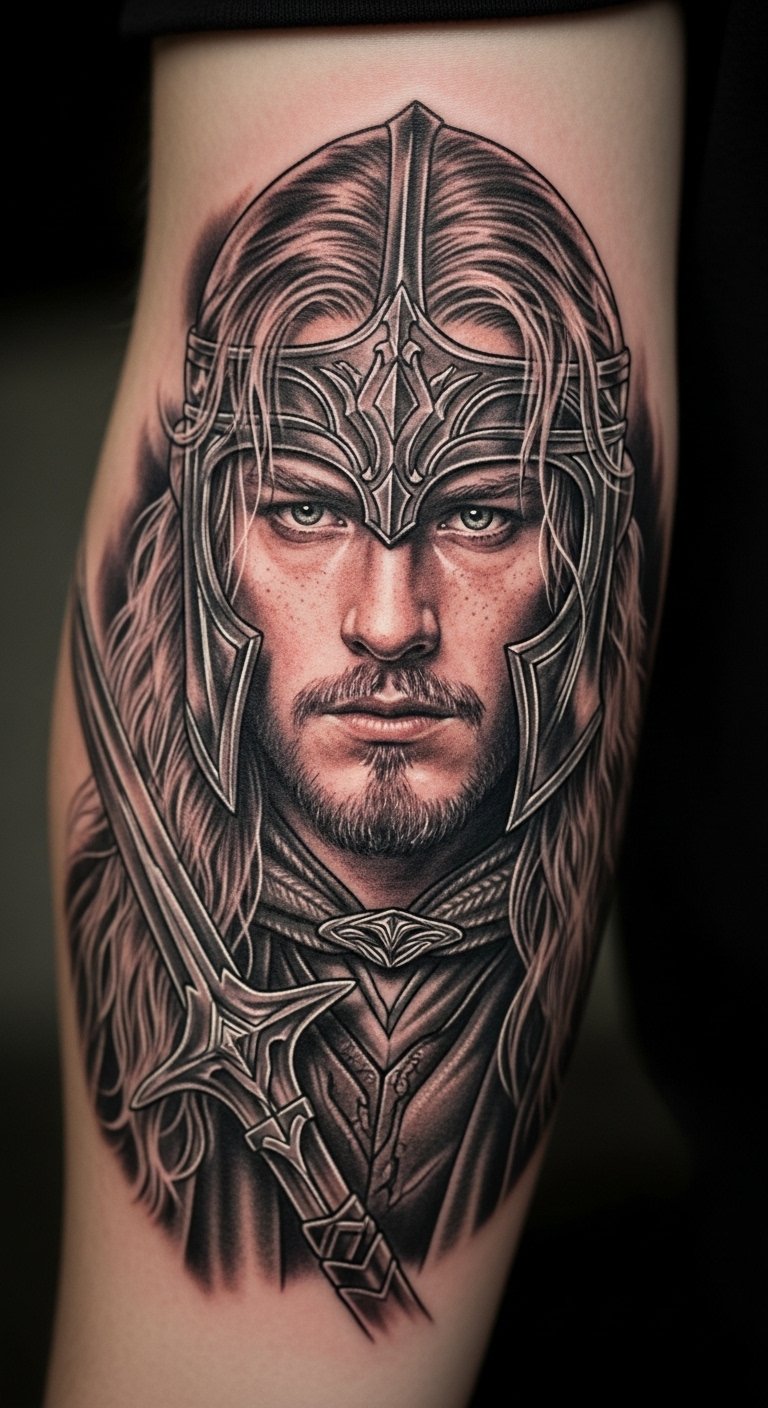 Aragorn’s sword makes a strong forearm piece. It highlights leadership and strength in simple lines. Draw it out first with household markers on paper. Opt for minimalist styles to keep costs low; basic ink jobs run under $100 at walk-in spots. Mix in small elements like a crown for extra meaning. DIY idea: Print a template online and try henna versions at home for practice. Place it where you see it often, like your arm, for motivation. This tattoo reminds you of heroic paths, and it’s easy to maintain with daily moisturizer from your bathroom cabinet.