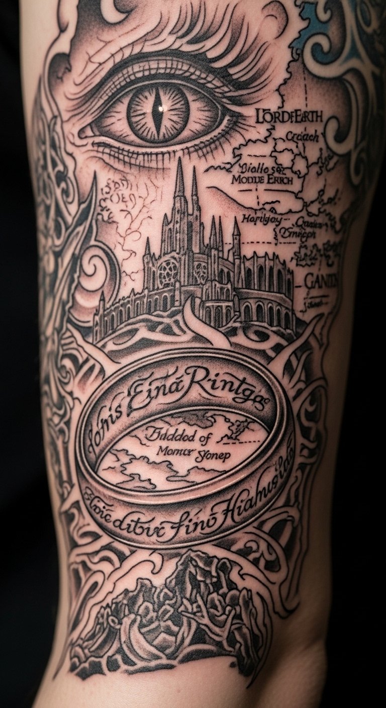 Middle-Earth on your back paints a vast scene. It covers lore elements. Sketch landscapes first. Opt for outlines to reduce price. Find sales at studios. DIY tip: Draw on large paper for scale. This tattoo tells a big story and stays covered. Maintain with body wash.