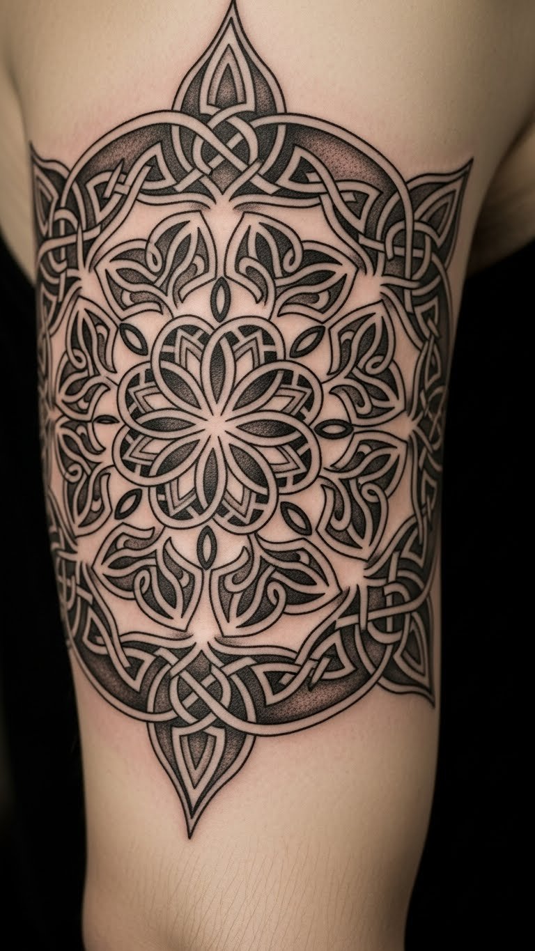 Celtic knots in mandalas mean endless connections. They represent life’s twists. Knot string at home for practice. Free and tactile. Tattoo on your arm for visibility. Find sales on custom work. Add knots to designs. Real tip: Weave friendship bracelets as models. Simple and cost-effective.