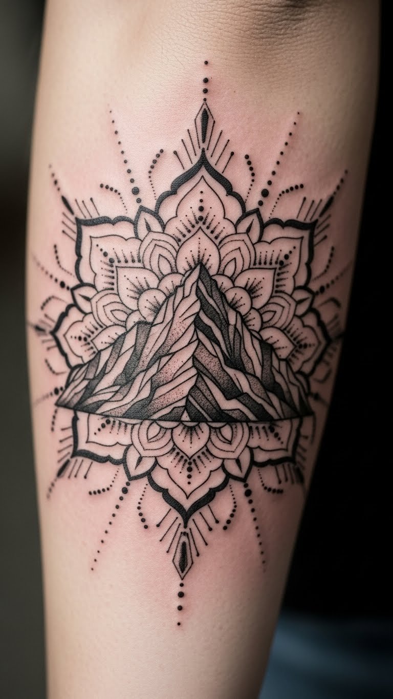 Triangles mean strength. Build a mandala around them. Sketch ideas with everyday supplies. Use phone apps for free designs. Keep it symmetrical for balance. Opt for a budget artist to cut expenses. Place it on visible spots like your arm. Experiment with dot patterns at home. This makes the process fun. Get a temporary version first. It tests the idea without commitment.