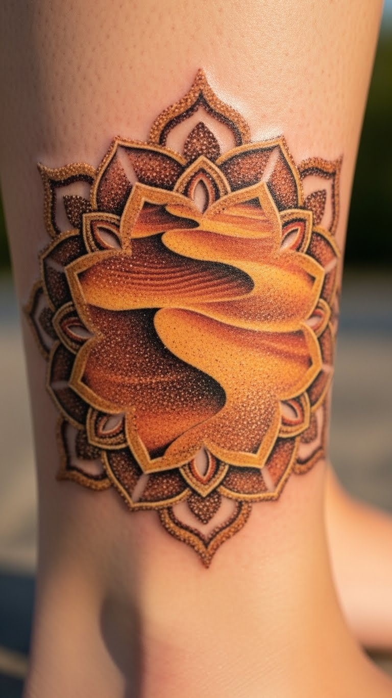 Sand shows resilience. Include dunes. Draw sand patterns. Use desert videos free. Keep it textured. Pick neutral inks. Place it on your leg. Try sand art at home. This grounds you. Make it a desert theme.