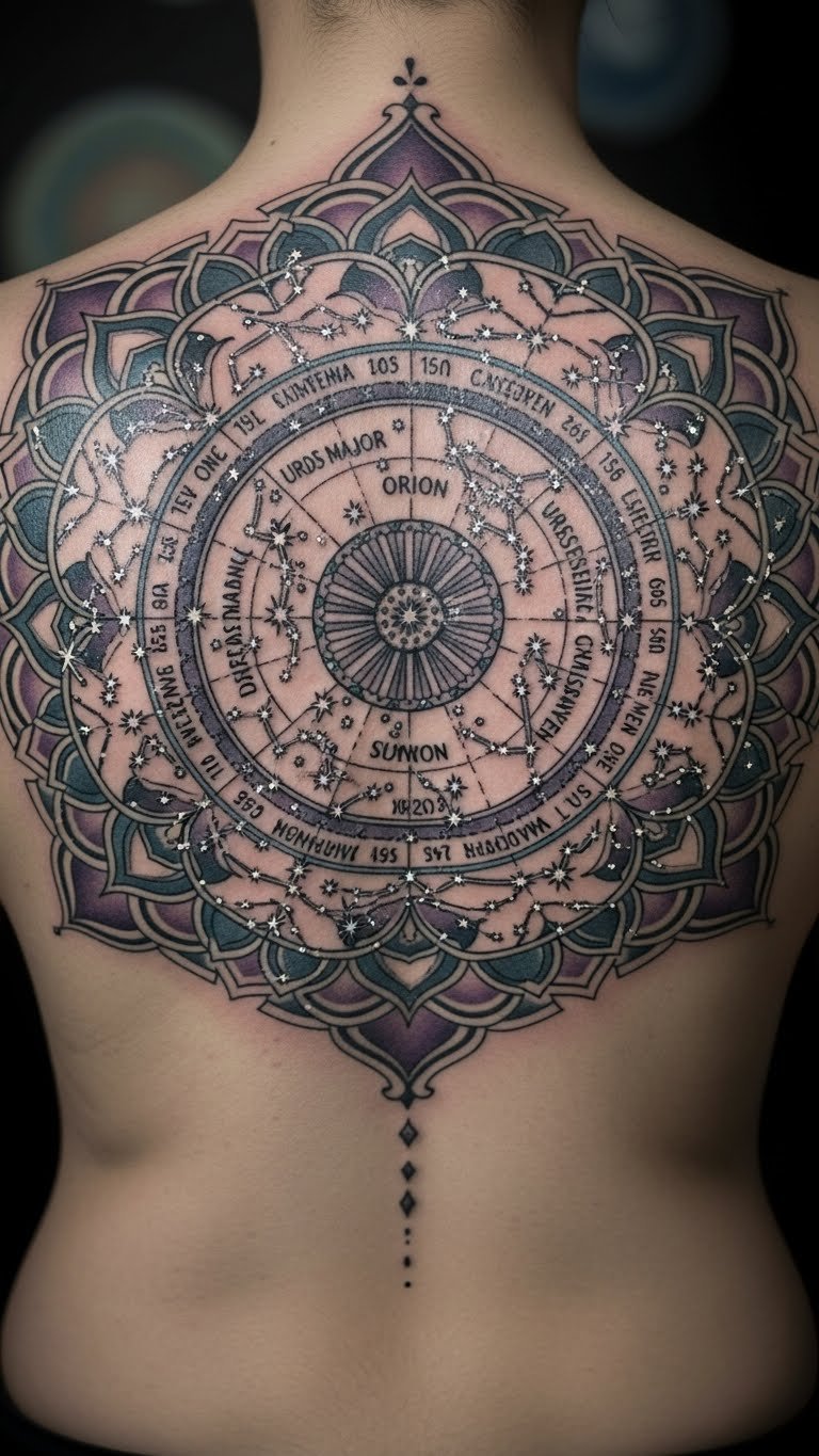 Stars guide paths. Map them in. Draw stars at night. Use star charts free. Keep it mapped. Opt for dark inks. Place it on your back. Try star gazing. This orients you. Make it a night event.