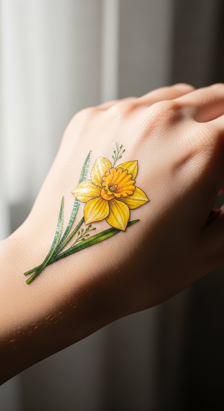 Temporary options let you test ideas first. Order stickers online and apply them with water—super cheap. Stick them on your hand to see how it looks. Include both daffodil and jonquil designs. This step prevents regrets. Use them for events without commitment. They cost pennies compared to real ink.