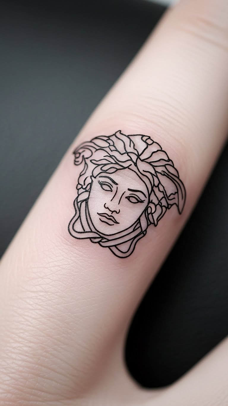 Fine-line Medusa is subtle grace. Thin lines form her face. Practice with a fine pen. Use free outlines. Add a twist easily. No expense needed. Finger stencils are simple. Temporaries under $1. Test and refine. Artists for $30. Place thoughtfully.
