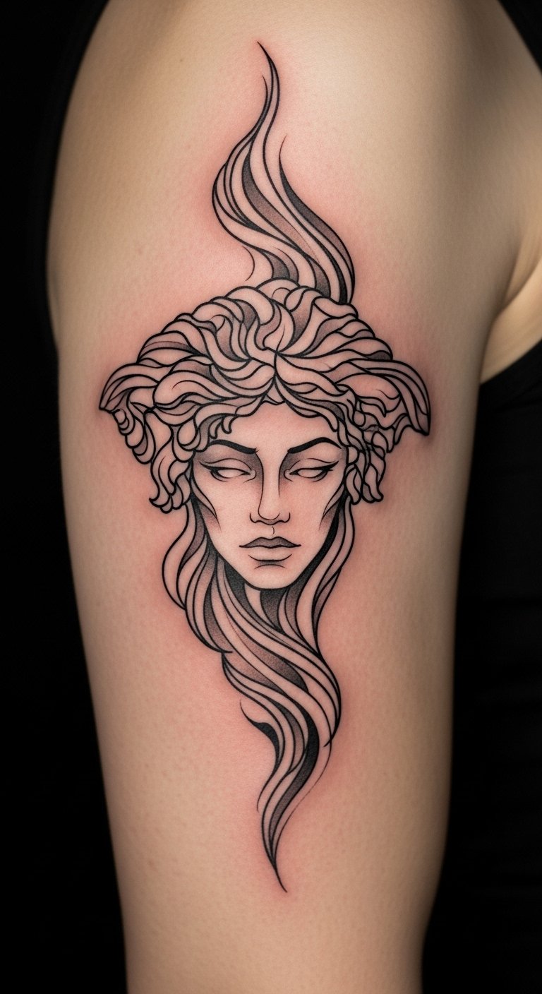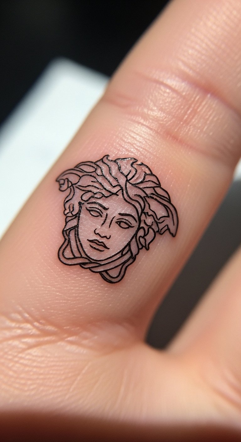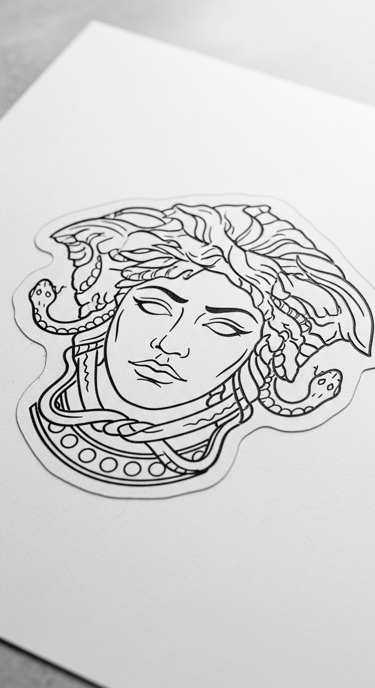 Choose fine-line Medusa for a delicate, precise look. This style uses thin strokes to keep it light. It’s perfect for those new to tattoos. Trace lines on your hand with a fine pen. Find free line-drawing tutorials online. Practice on paper before deciding. Empowerment hides in the details. Save by using basic drawing tools at home. Try temporary ink from drugstores. Place it on fingers for subtle impact.