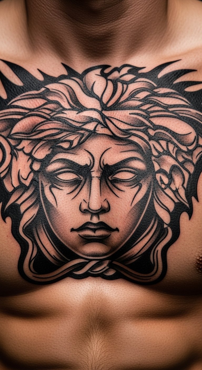 Adapt Medusa for men with sharper edges. This version adds strength to the myth. It fits personal styles well. Draw it with thick lines on paper. Get free masculine templates. Use bold pens for tests. Resilience in tough designs. Opt for budget artist options. Try athletic wraps for previews. Place on chest for power.