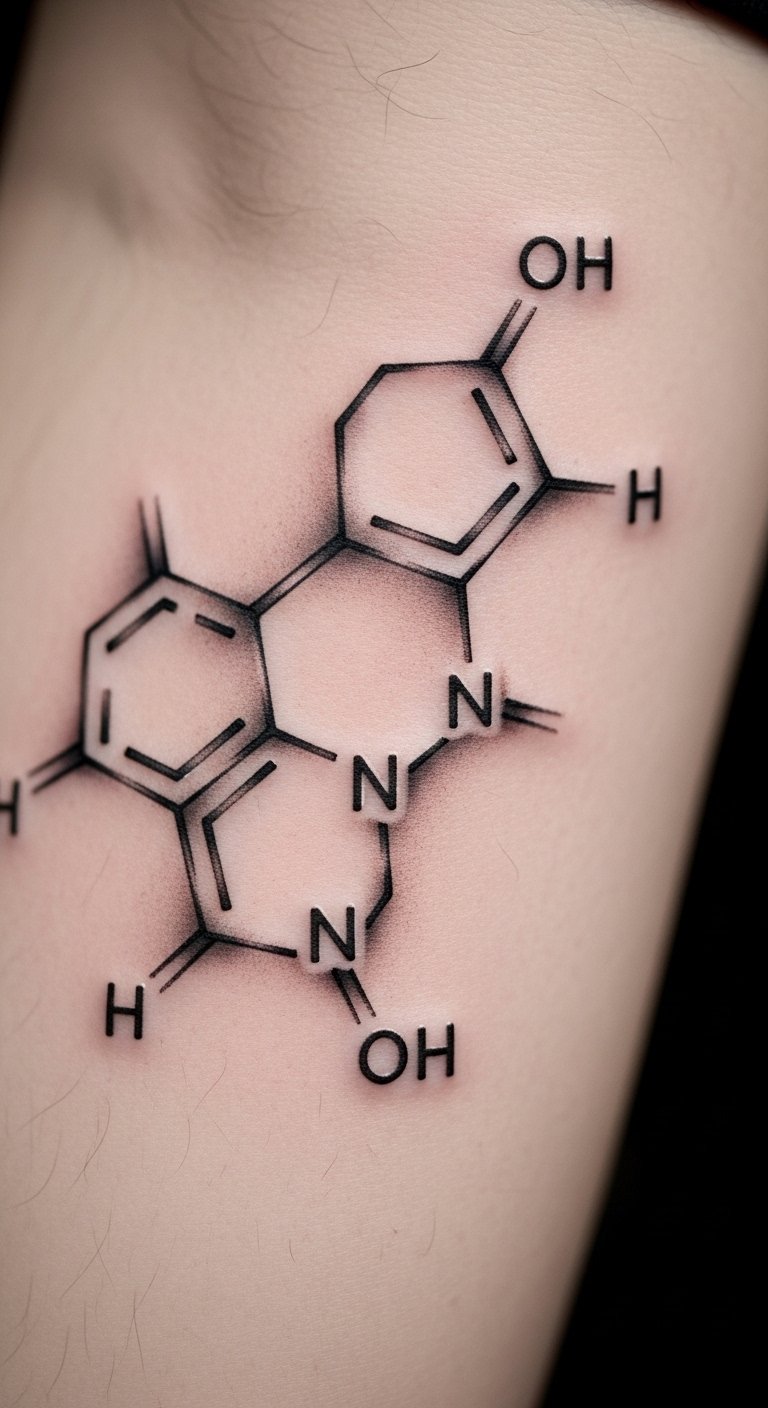 A serotonin tattoo represents biochemical wellness. It shows a focus on positive moods. This design highlights your health journey.