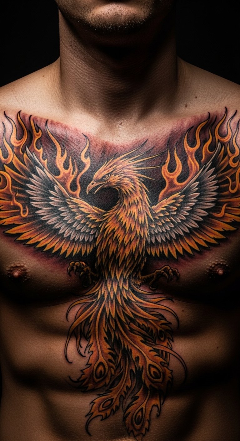 A phoenix tattoo means rising from ashes. It symbolizes recovery and new beginnings. This design ignites hope.