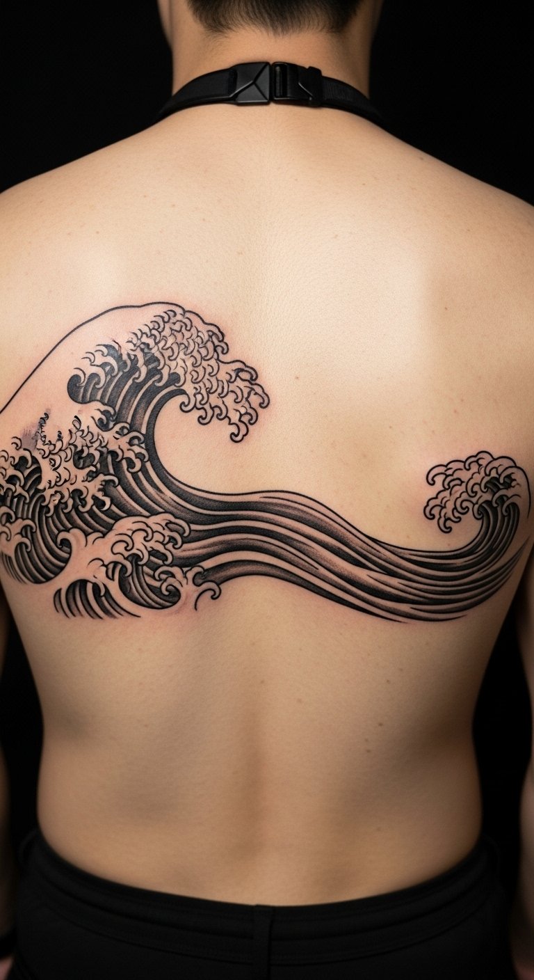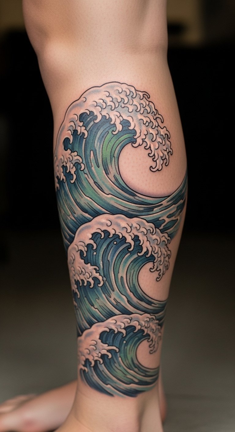 A wave tattoo illustrates emotional ups and downs. It promotes flow and adaptability. This design encourages balance.