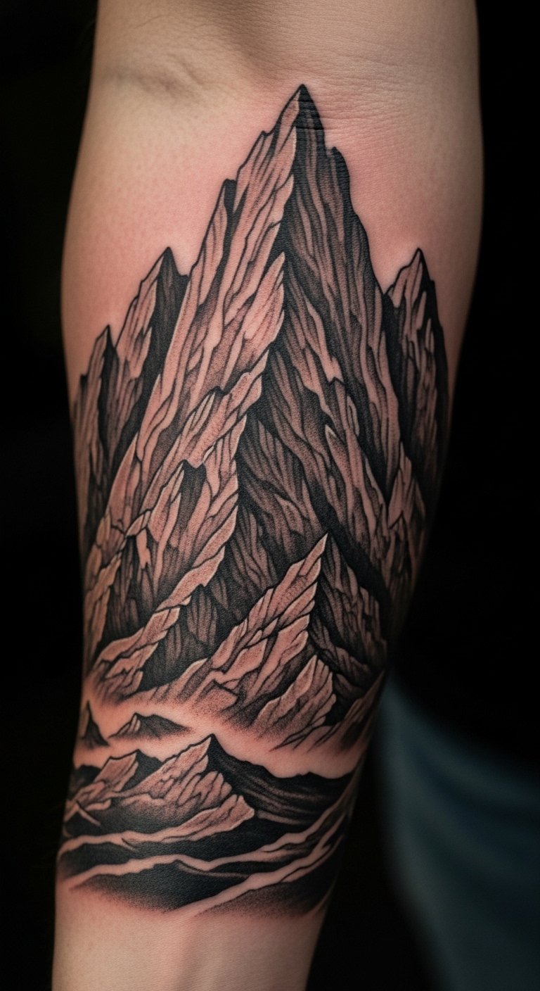 A mountain tattoo stands for overcoming obstacles. It reflects your climbs and views. This ink builds endurance.