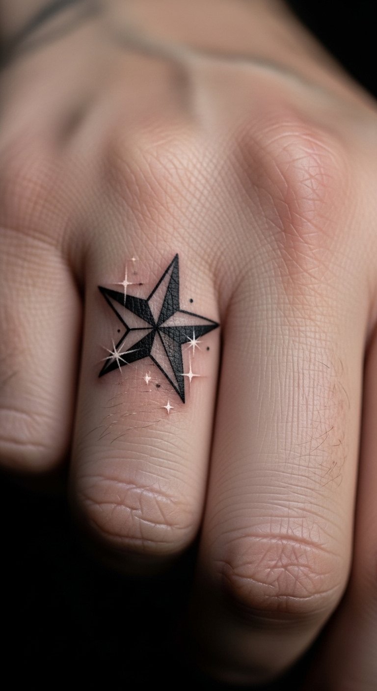 A star tattoo offers guidance in dark times. It shines as a beacon of hope. This design lights your way.