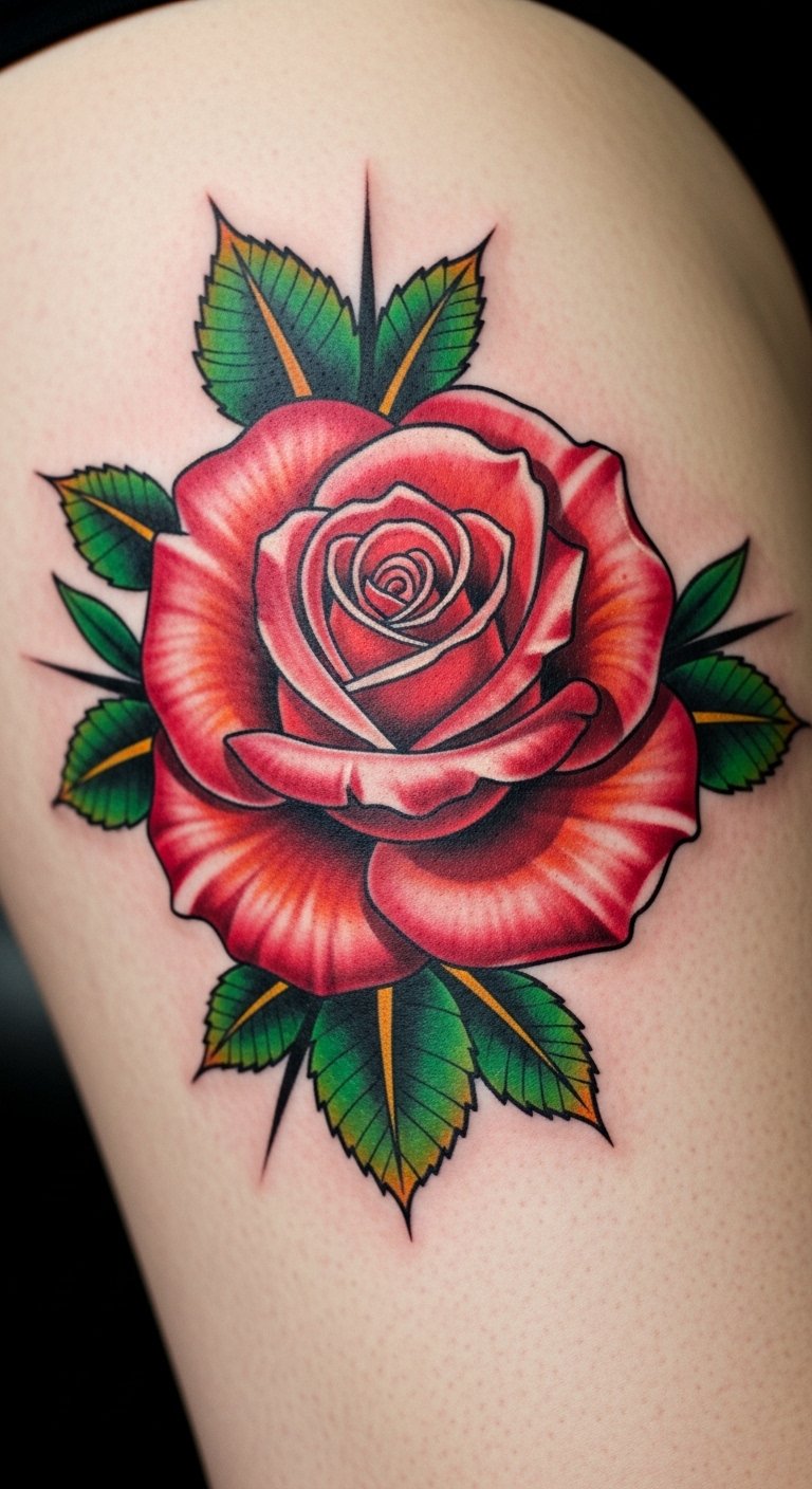 A rose tattoo shows beauty amid thorns. It represents growth through pain. This ink celebrates resilience.