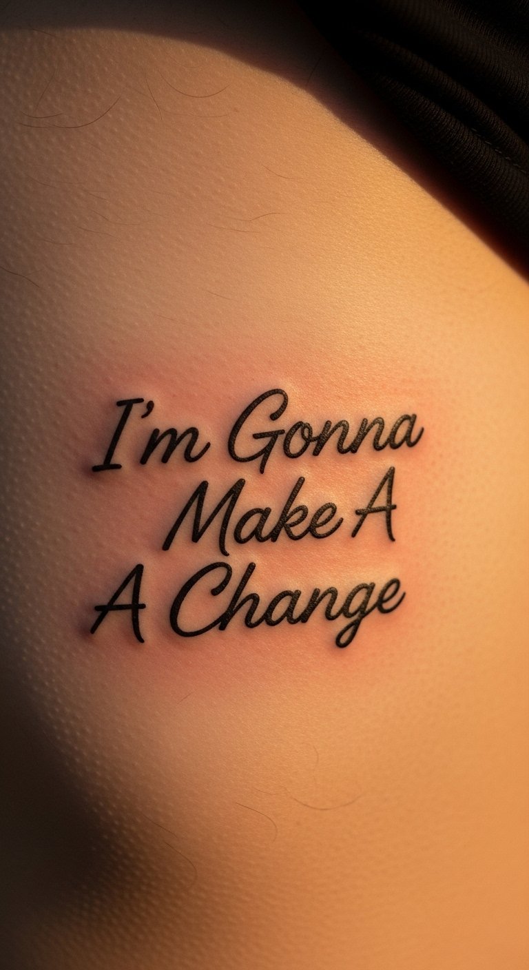 Lyrics that inspire change. This tattoo uses words from the song in neat text. Try your forearm for easy reading. Write it out on paper first. Use a free editing app to adjust the font. Keep it plain to cut expenses. Add a small mirror image beside it. This one speaks to personal growth. Search for budget artists nearby. Prices start at $40. It’s a daily motivator.