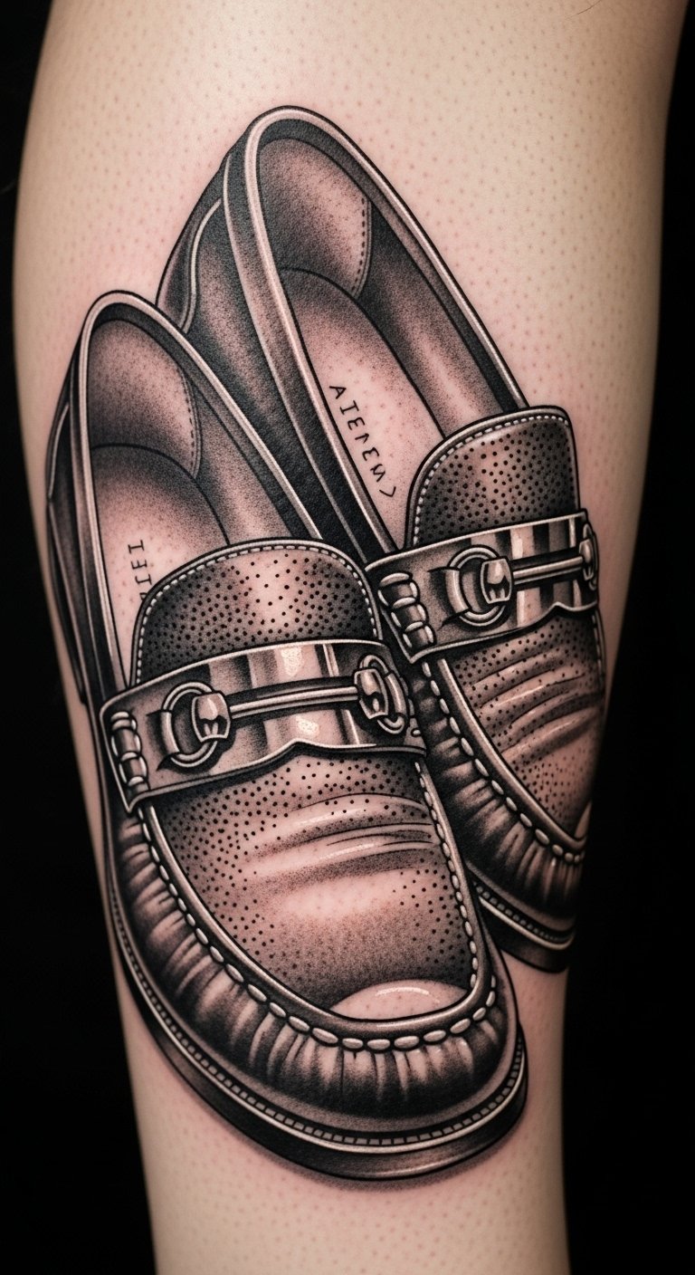 Shoes that shine. This design shows his iconic loafers. Put them on your ankle. Practice with colored pencils. Grab free vector files online. Keep it simple with outlines. Add sparkles for a twist. This one suits casual wear. Look for affordable options in town. About $60 total. Walk in his footsteps.