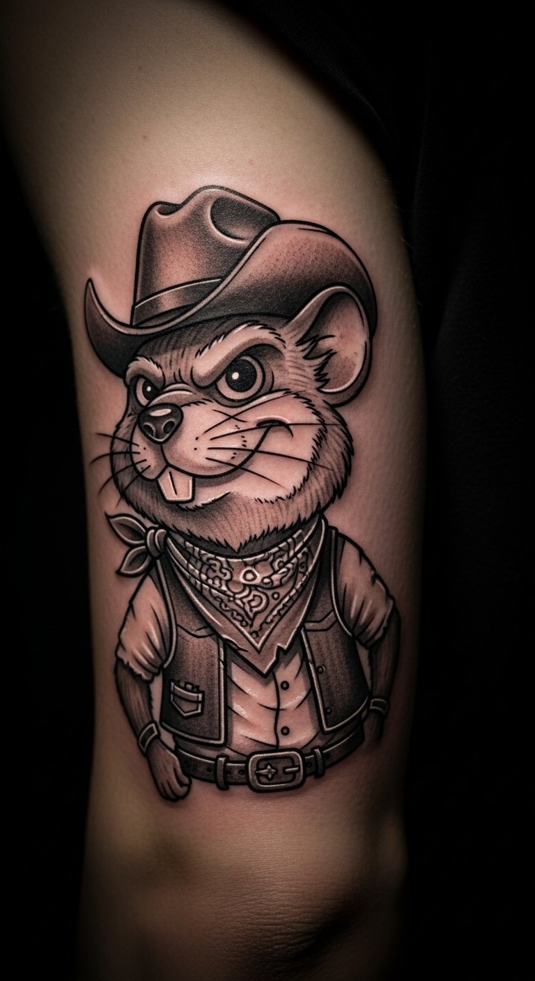 Outlaw Mickey adds edge with accessories like a bandana. It’s cool and rebellious. Choose your bicep for strength. Find outlaw themes online and combine. Draw with bold strokes at home. Use dark inks to stay cheap. This design is tough and fast. Tweak accessories to fit. It’s bold and easy. Sketch ideas quickly. Show your spirit with this.