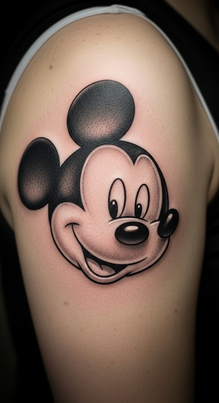Behind-the-ear Mickey stays discreet and cute. His ears peek out just a bit. Ideal for those who want subtlety. Download subtle templates and sketch them. Use a mirror to see how it looks. Keep lines thin for less ink cost. This spot is fast and easy. Customize by making it even smaller. It’s perfect for everyday life. Test with temporary options at home. Enjoy the secret smile it gives.