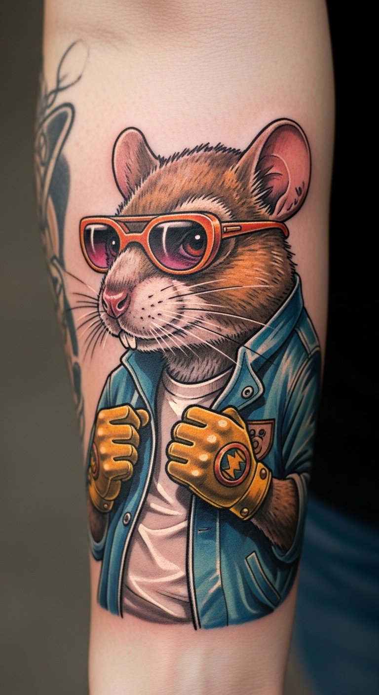 Gangster Mickey mixes fun with tough vibes. Picture him in a fedora and suit, like from old movies. It’s a bold choice for your arm or back. Find a design online and print it for $10 or less. Use temporary tattoos to try it out at home. Pick affordable ink colors like basic black and gray. Add details yourself in sketches to match your story. Short sessions help keep costs down. Aim for a local artist who does quick work. This design stands out but stays easy to maintain. Get creative by adding small elements like a tiny hat. You’ll have a tattoo that tells your tale without much fuss.