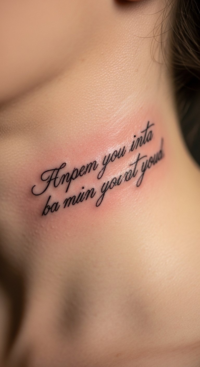 6. Graceful Script Quote on Neck