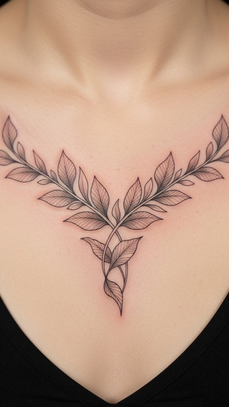 Delicate leaf patterns offer a natural feel on your chest. They mimic real foliage. Draw leaves on paper to plan. Vary the shapes for interest. Search for affordable studios nearby. Read feedback to pick one. Use black ink for easy maintenance. It holds its form. Try leaf templates at home. Trace them on your skin. Place them symmetrically for appeal. This enhances your curves. Pick leaves that symbolize something to you. Like growth or change. Go small to keep it versatile. Tuck it away or display it. It’s an effortless addition to your style.