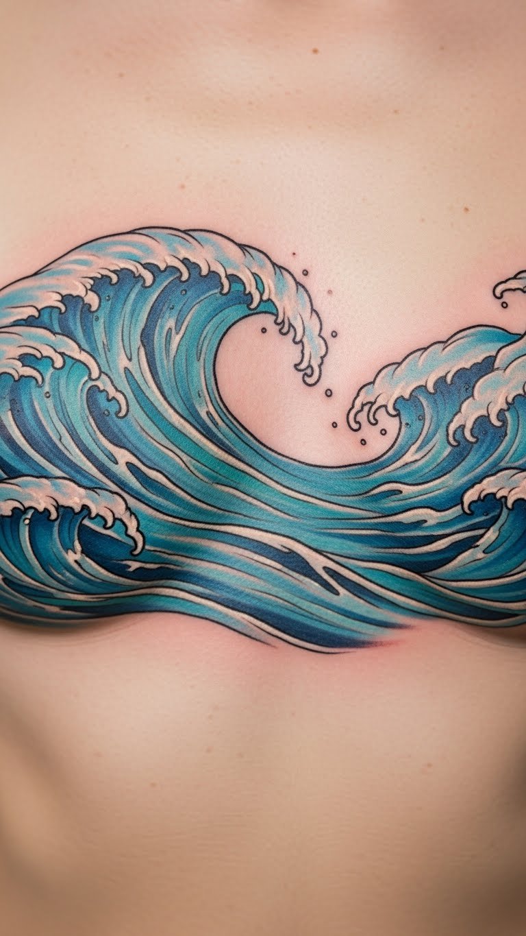 Wave and ocean motifs bring the sea to your chest. They flow like water. Sketch waves on a page to begin. Add curves that move. Check for artist discounts online. This helps with budgeting. Use black ink for resilience. It withstands wear. Try water-based paints at home. Paint the design and check. Place it to follow your lines. This adds fluidity. Pick waves for their meaning. Like calm or adventure. Make it fitting for clothes. Cover when needed. It’s a refreshing idea to explore.