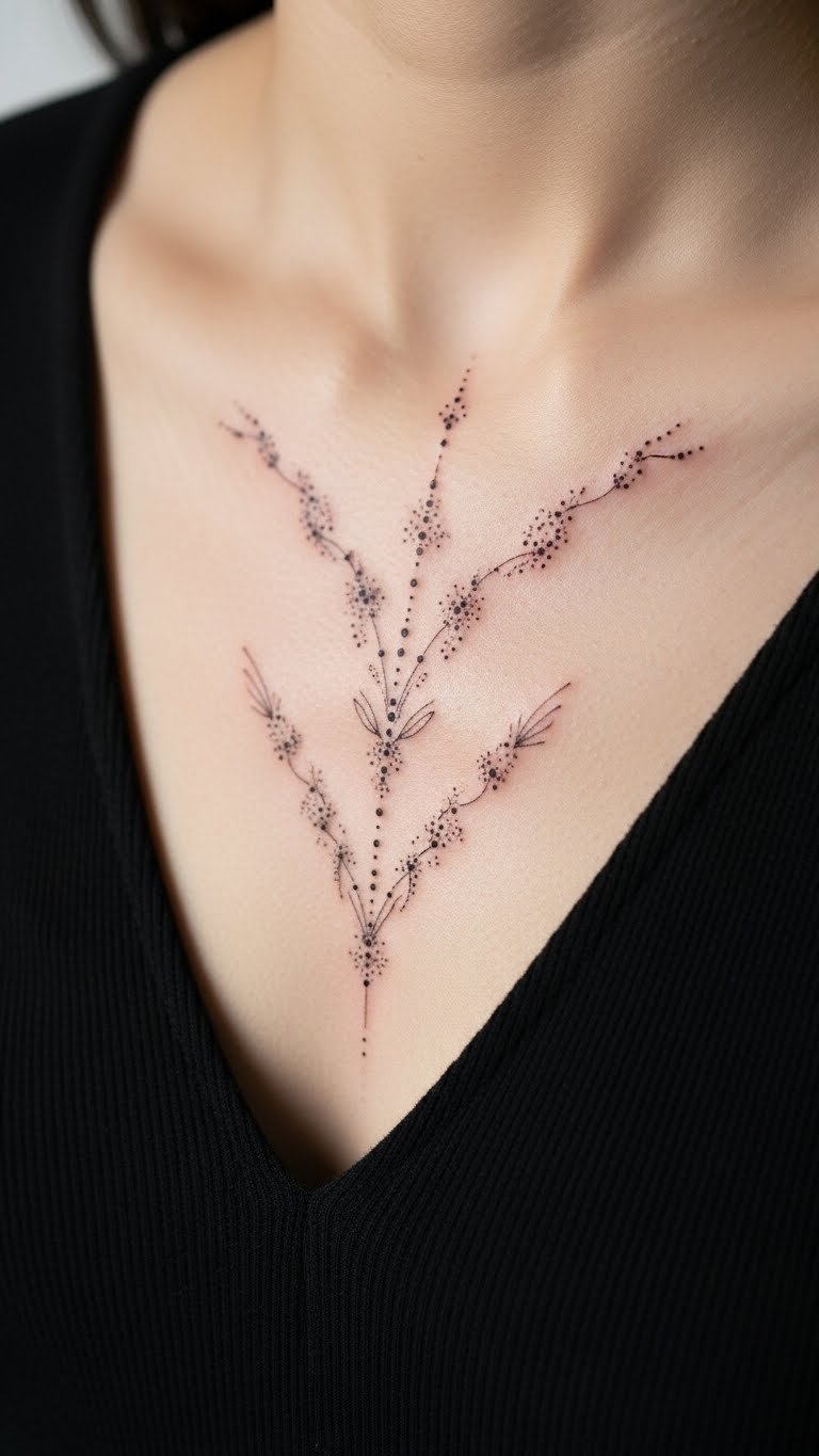 Dot and line mixes blend on your chest. They create patterns. Draw dots with lines. Experiment. Look for session packages. This saves. Use black ink for hold. It’s solid. Try dot-line sketches at home. Draw on skin. Arrange it balanced. This works with you. Choose for creativity. Like art. Go small for flexibility. Wear as needed. It’s a mixed bag.