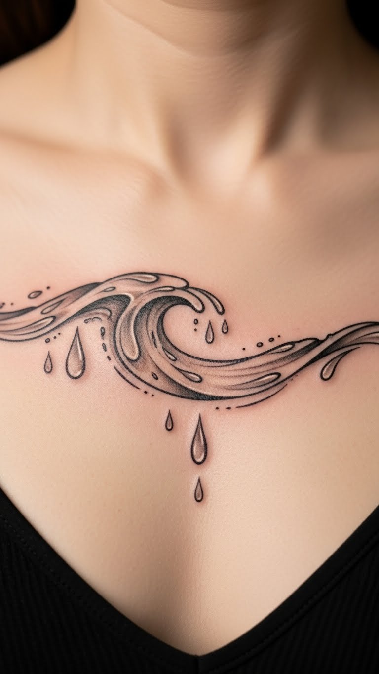 Wavelet and drop designs ripple on your chest. They mimic water. Draw waves with drops. Plan flow. Find artists with specials. This cuts cost. Use black ink for vibrancy. It lasts. Try water drawings at home. Sketch on. Place it naturally. This follows curves. Choose for fluidity. Like emotions. Go for adaptable size. Hide or show. It’s a fluid choice.