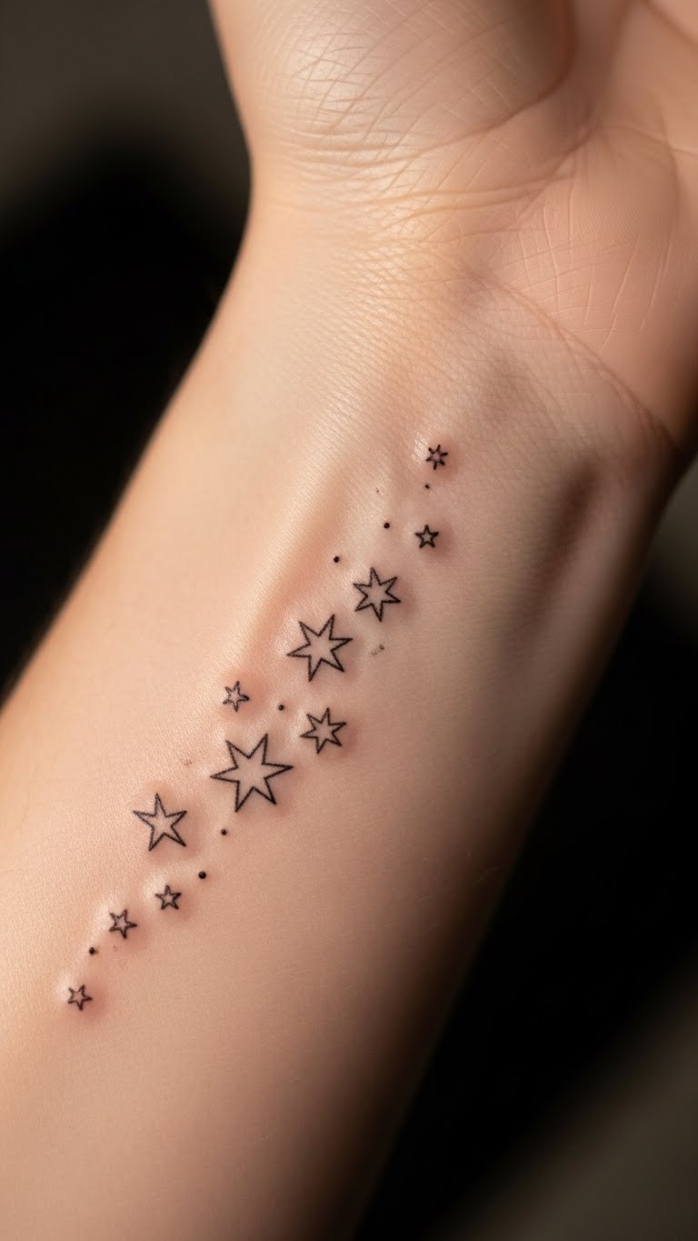 Stars on your wrist make daily statements. Wrist star placement keeps things visible yet discreet. Mark spots on your wrist with a marker first. Book for $60 to $150 locally. Arrange stars in a line for flow. Use mirror apps to check symmetry for free. Choose one or two to save money. Try band-aids with drawn stars, under $2, for trials. It’s perfect for beginners.