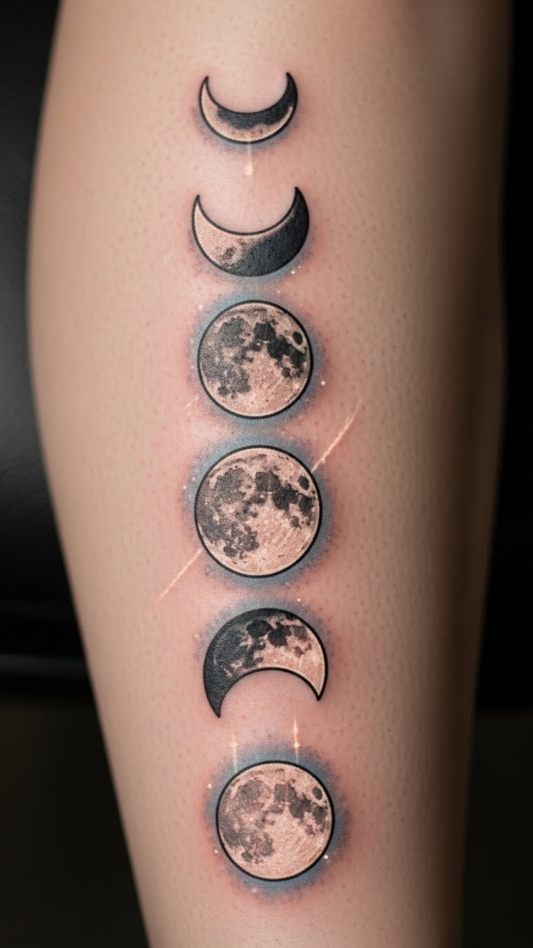 Show change with moon cycles. A renewal moon cycle climbs your leg for motivation. Sketch cycles in a sketchbook first. Hire for $150 to $300 with a cycle artist. Link to your life events. Use timeline apps to plan for free. Keep it sequential to manage expenses. Practice with cycle drawings, around $5 for supplies. This marks your path.
