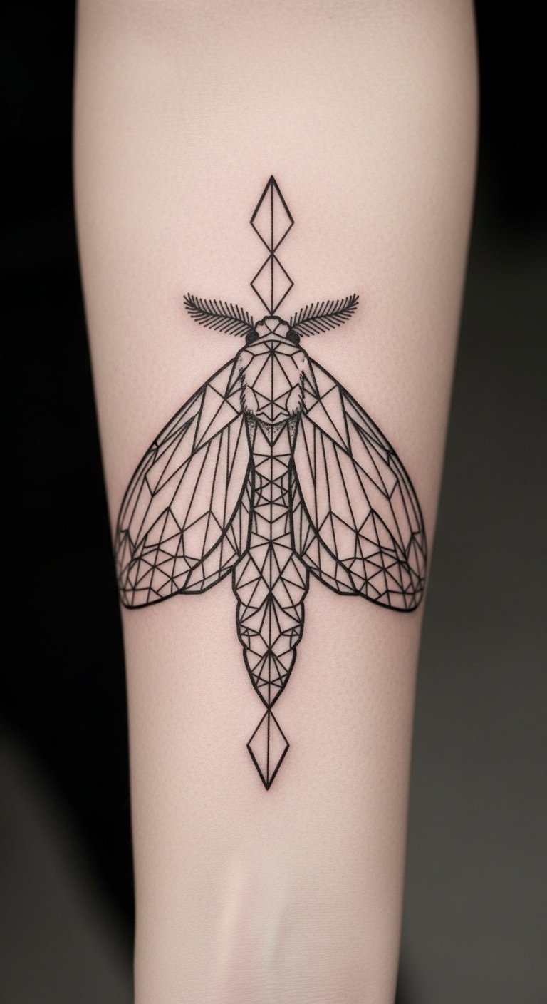 Geometric moth tattoos use angles for a modern edge. Think triangles meeting wings. Plan at home with graph paper and a ruler. Find free apps for digital designs to print out. Stick to your forearm for a bold statement. Divide it: draw the base, then add points. Use string and pins for accurate shapes on fabric first. For instance, create a paper cutout to test size. This look suits creative types—pair with accessories. Keep edges sharp for impact. Affordable tools help you experiment quickly.
