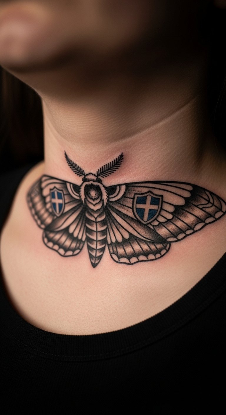 Protective moth tattoos use symbols for safety. Wings act as guards. Design on paper with protective icons. Use amulet images from books for ideas. Try on your neck for subtle power. Divide: add symbols step by step. Personalize with beads for a mock-up. Real example: draw with safe ink for a trial. This look offers comfort—keep it small. Affordable ways to explore make it simple.