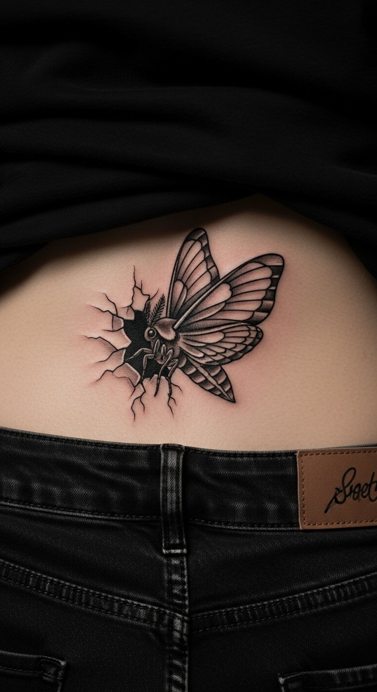 Resilient moth tattoos show strength in design. A moth pushes forward. Sketch overcoming scenes on paper. Use barrier stickers for ideas. Put on your back for motivation. Break into parts: moth and obstacle. Add personal symbols. For example, draw with bold markers. This look inspires—focus on action. Affordable tools help build it.