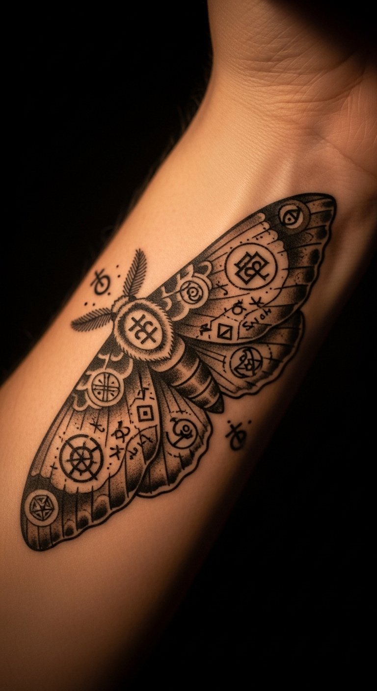 Spiritual Moth with Symbols