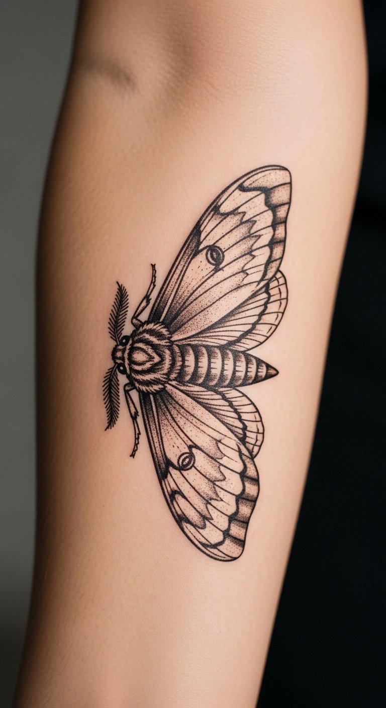 Spiritual moth tattoos add icons for meaning. Wings carry messages. Plan symbols on paper. Find icon sets online. Place on your wrist for reminder. Divide: symbols on wings. Add with stamps. Real tip: use symbolic cards for ideas. This look connects—keep it purposeful. Easy actions bring meaning.
