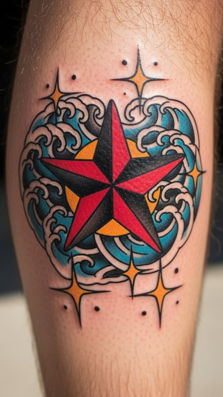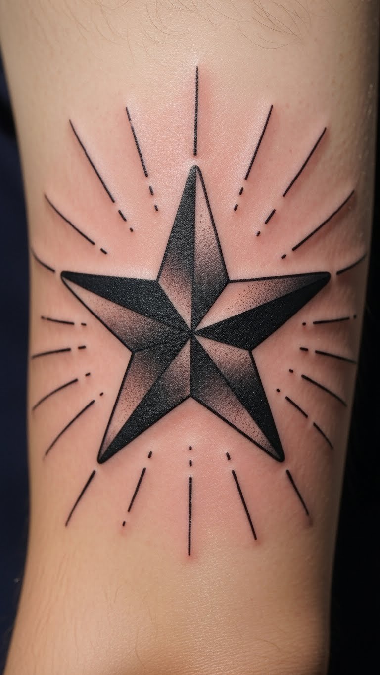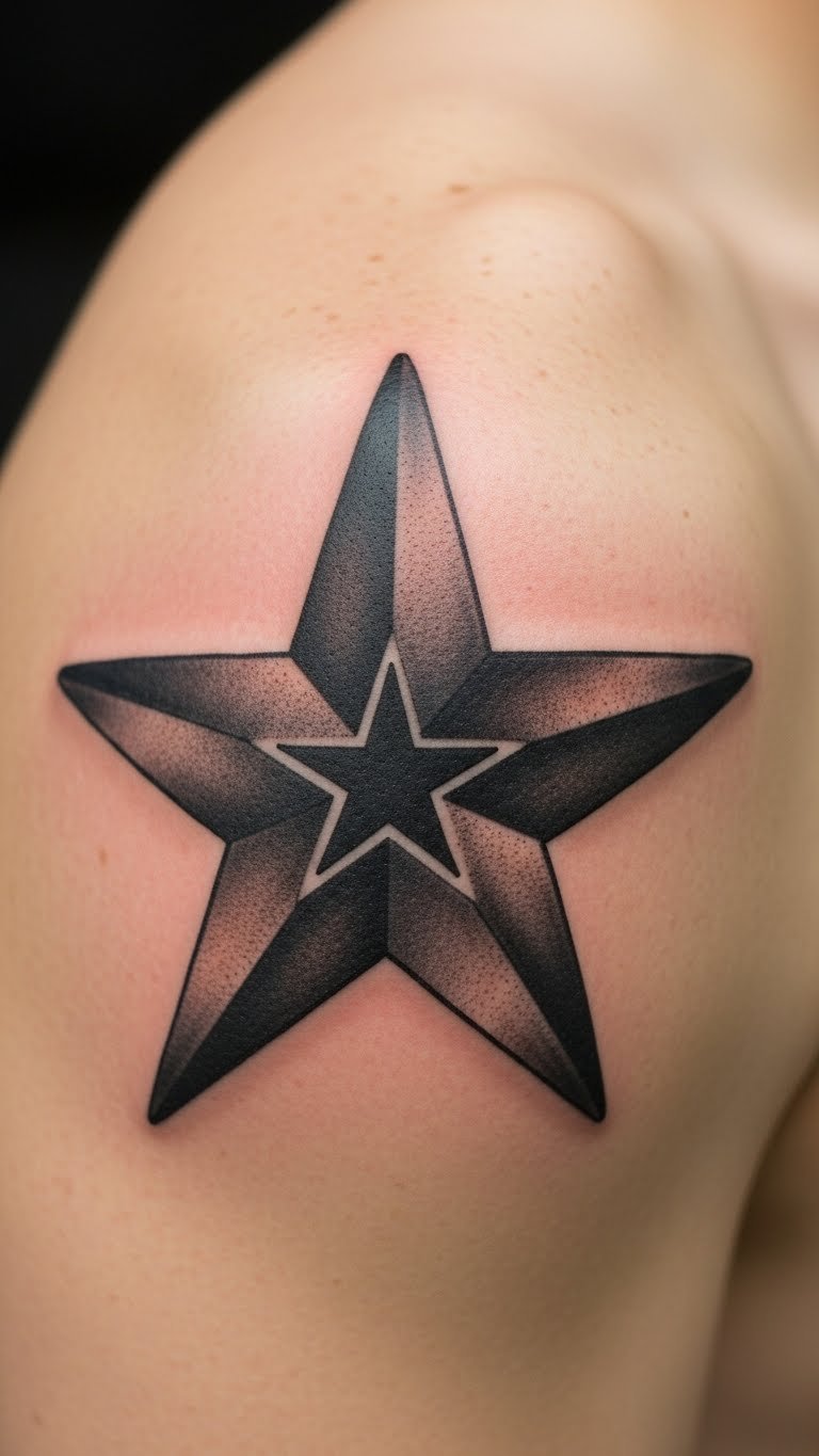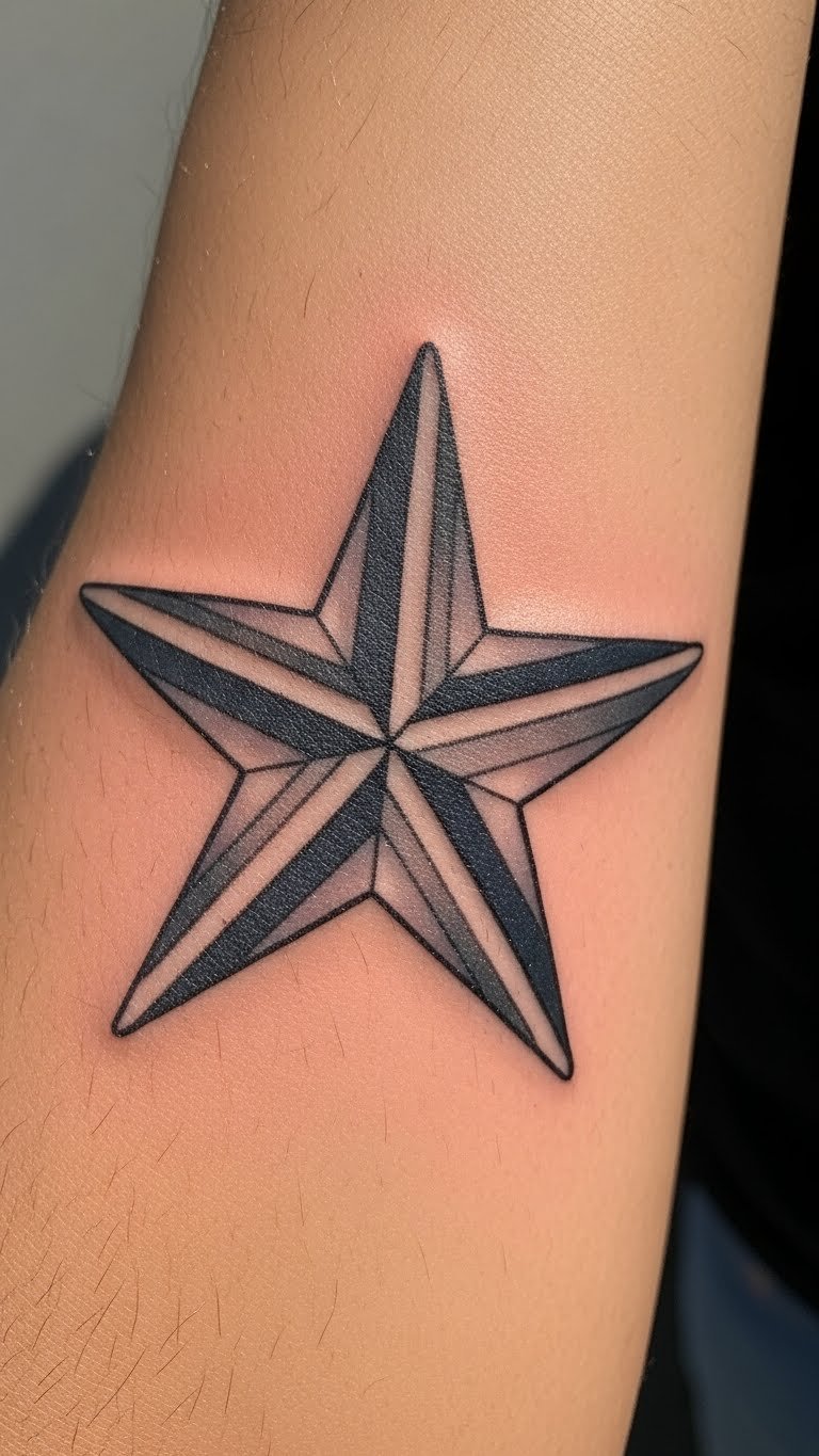 Create depth with a 3D nautical star, making it pop off the skin. Choose the forearm for prominence. Use shading for the effect. DIY: Shade a drawing with pencils at home—simple start. Prices hit $100-150. Find 3D offers online. Add shadows carefully. Sleeves can hide it. Tip: Discuss shading with your artist. This brings tattoos to life—touch and see. Act: Practice shading on paper.
