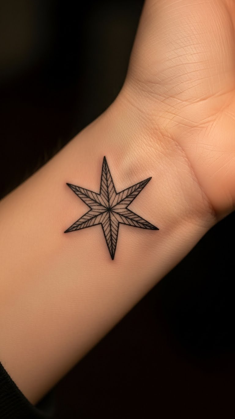 Wrist tattoos keep things subtle yet meaningful, perfect for a nautical star that guides quietly. Place it on the inner wrist for a personal touch. Draw inspiration from compass roses—try a small, five-pointed version. DIY preview: Use a temporary tattoo kit from the dollar store to test the look; they cost less than $5 and wash off easy. Opt for black ink to match any outfit. Save money by choosing smaller sizes, around 1 inch, which might run $50-80. Schedule during weekdays for lower rates. Combine it with other symbols if space allows, like a tiny anchor nearby. Wear a watch over it for work days. Quick tip: Clean the area with soap and water before your appointment to avoid extra fees. This placement works for all ages—roll up sleeves to reveal when you want. Take the first step: Search for “local tattoo deals” and compare a few options online.