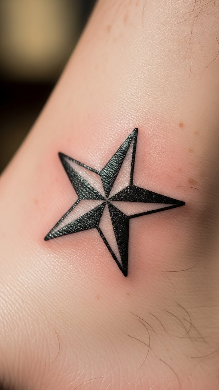 Keep it simple with a minimalist nautical star outline, great for a clean look. Try the ankle for a hidden gem. Draw just the basic points without fills. DIY: Trace a star on your skin with a non-permanent pen from your desk—quick and free. Stick to black ink for sessions under $50. Look for flash deals online. Add a single line for extra meaning at no extra cost. Slip on socks to conceal it. Tip: Shave the area before going to speed things up. This style fits busy lives—show it with sandals. Start simple: Draw one on paper and decide.