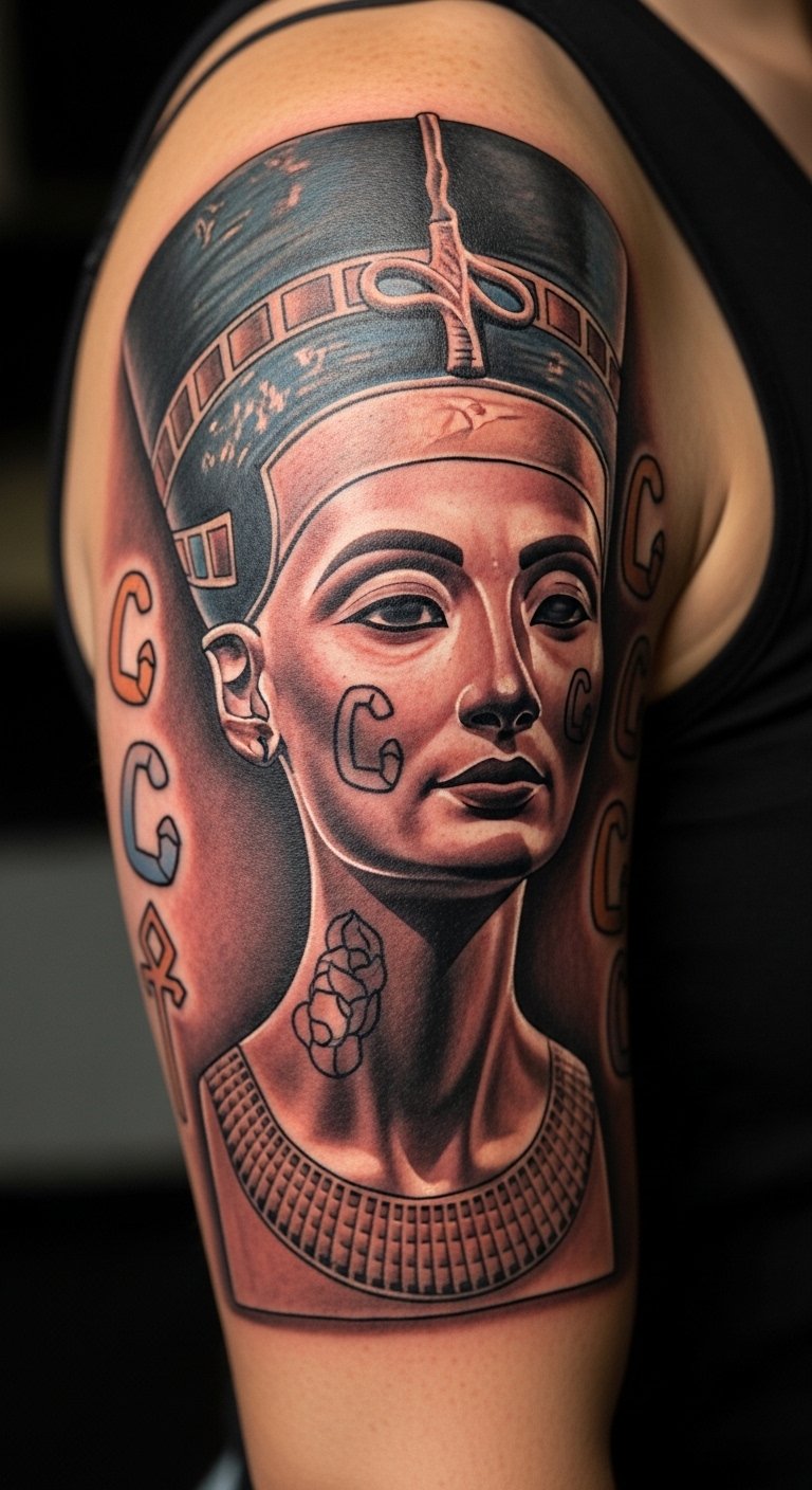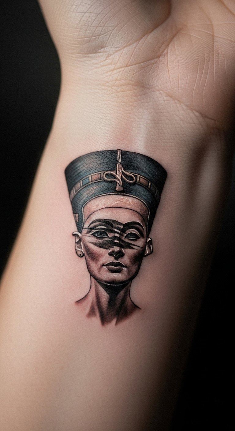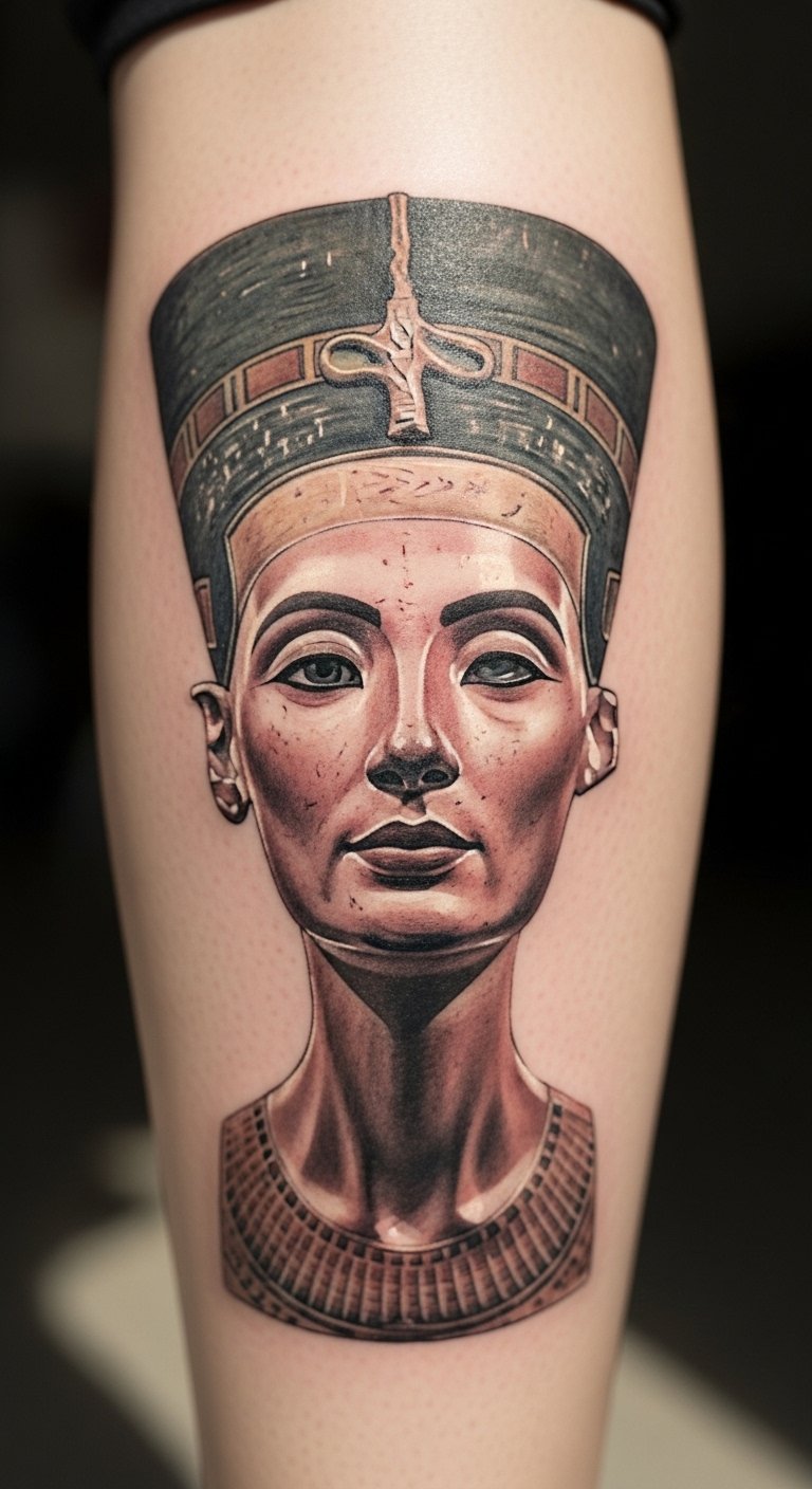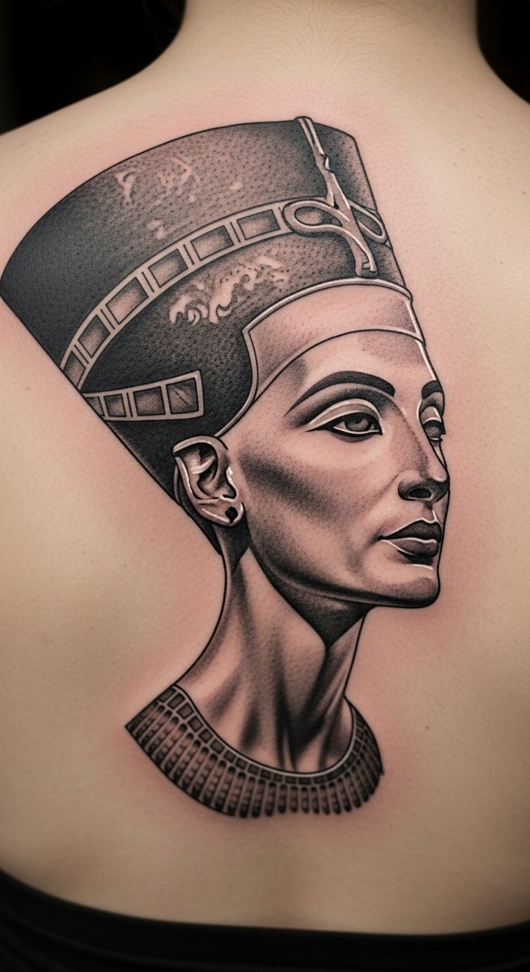 Single needle Nefertiti tattoos offer super fine details. Think tiny dots that build a lifelike face. The eyes and cheeks get soft shades. This fits a smaller budget with shorter sessions. Search for artists who specialize in details. Draw rough ideas with a fine pen. Use free tutorials online to visualize. Place it on your upper arm for balance. Bold this: single needle details pop with care. Clean gently with mild soap. Moisturize with basic cream. Wear breathable shirts to heal. Try marker tests on your skin first. Go for compact designs to save money. Get recommendations from online groups. You achieve realism without high prices.