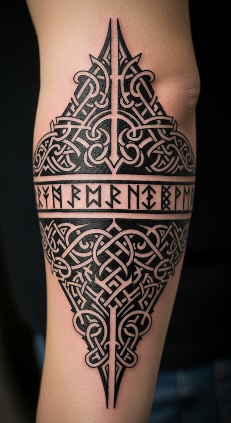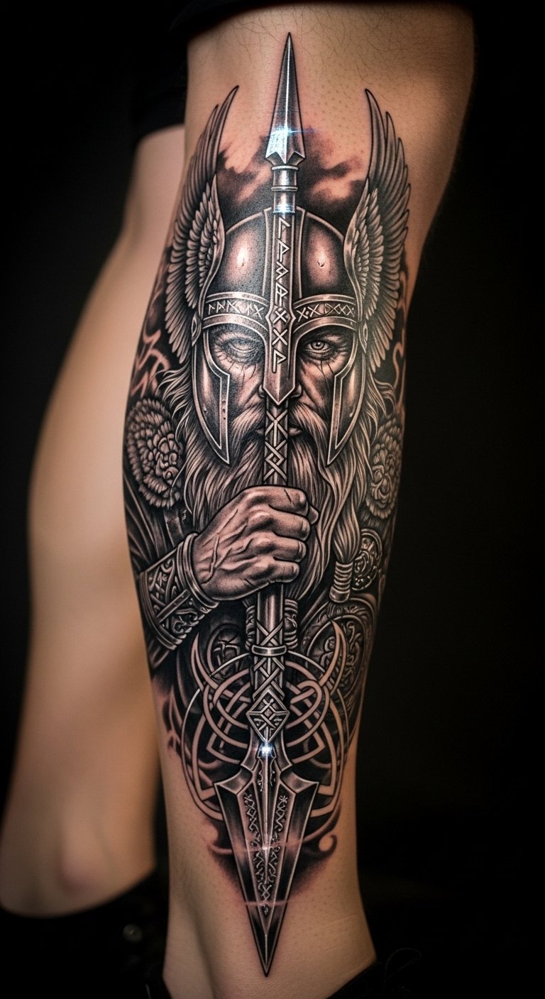 Runes in Odin tattoos add magic and secrets. They stand for knowledge gained. Use them for guidance.