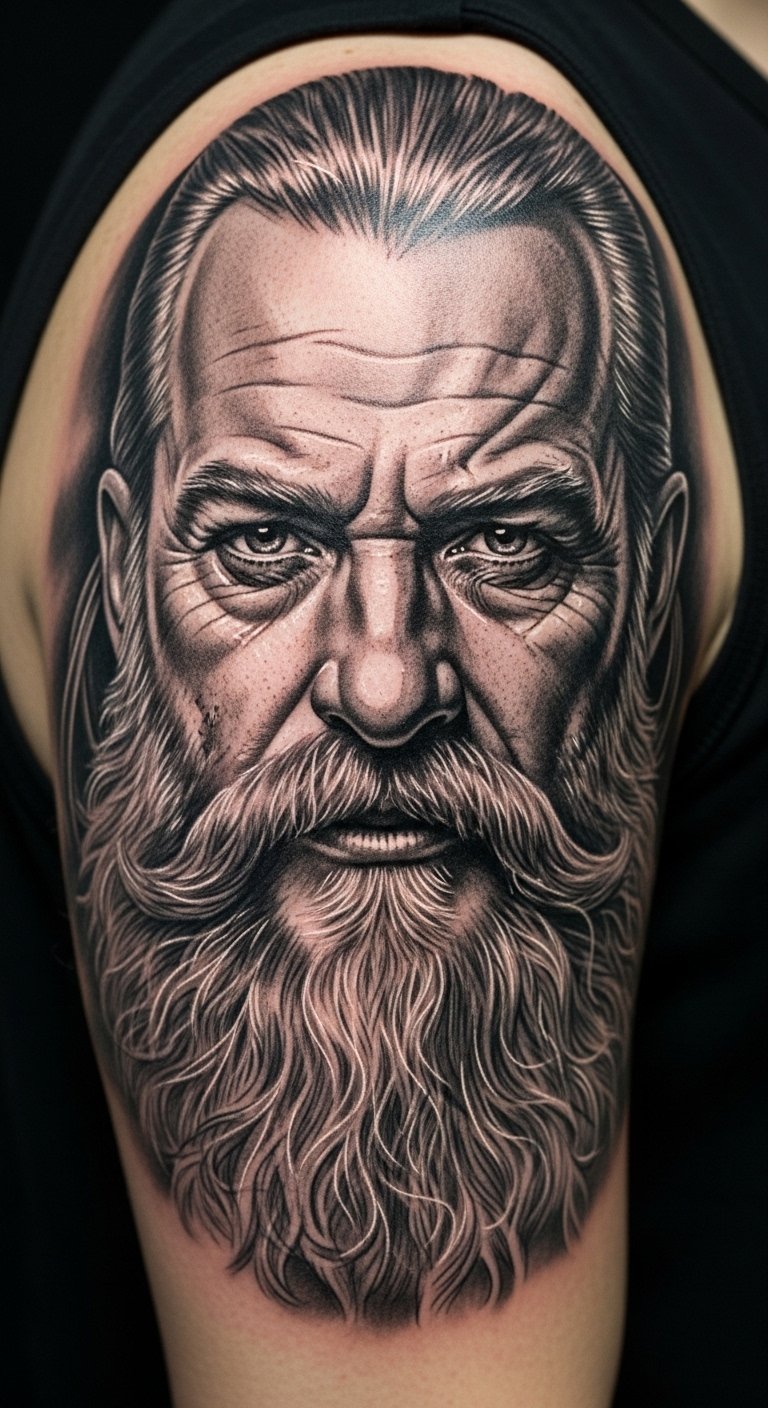 A realistic Odin face brings myths to life. It highlights wisdom and power. Go for this to honor your path.