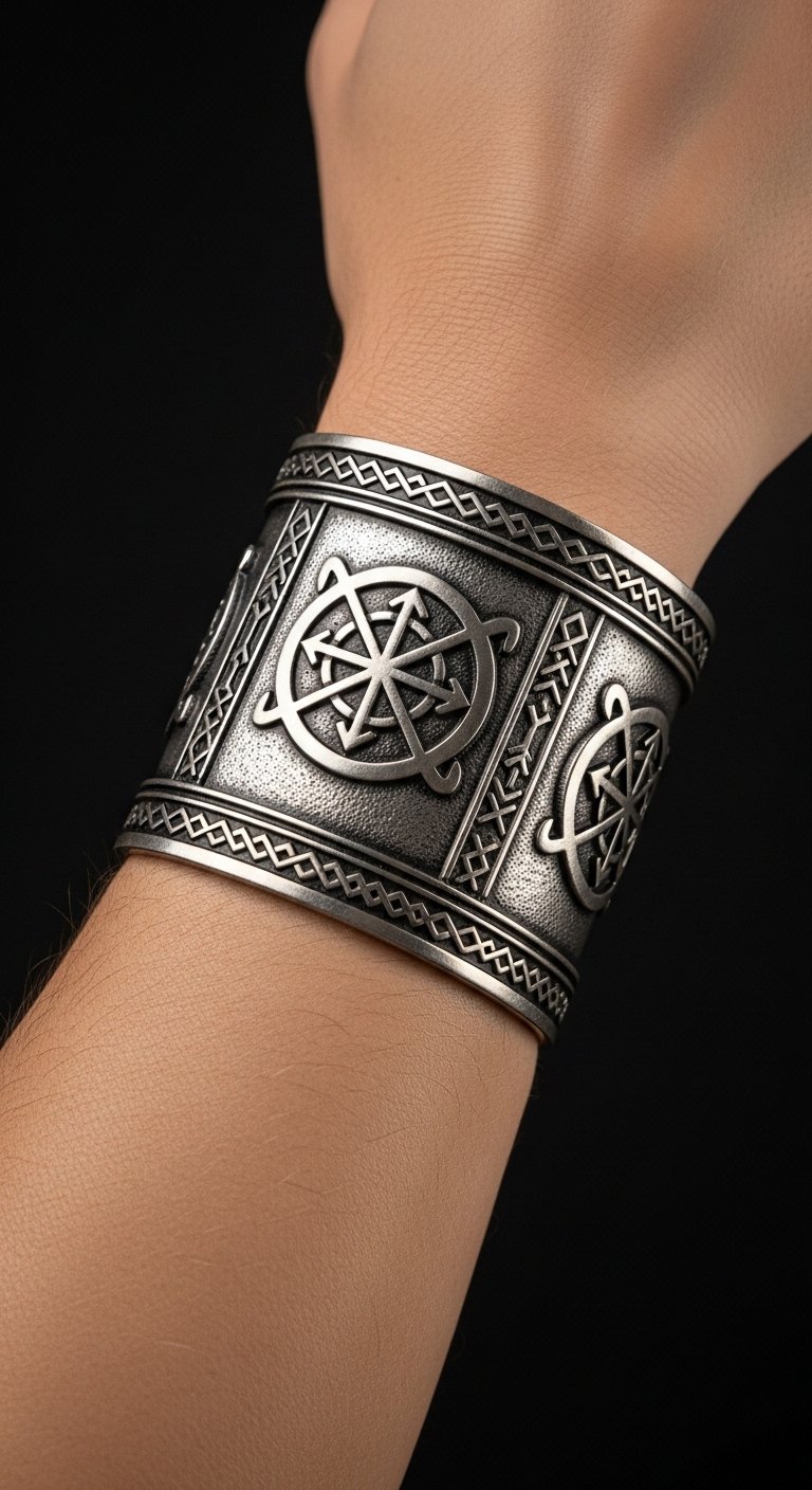 Wrist Odin cuffs link to action. They mean quick decisions. Wear for reminders.