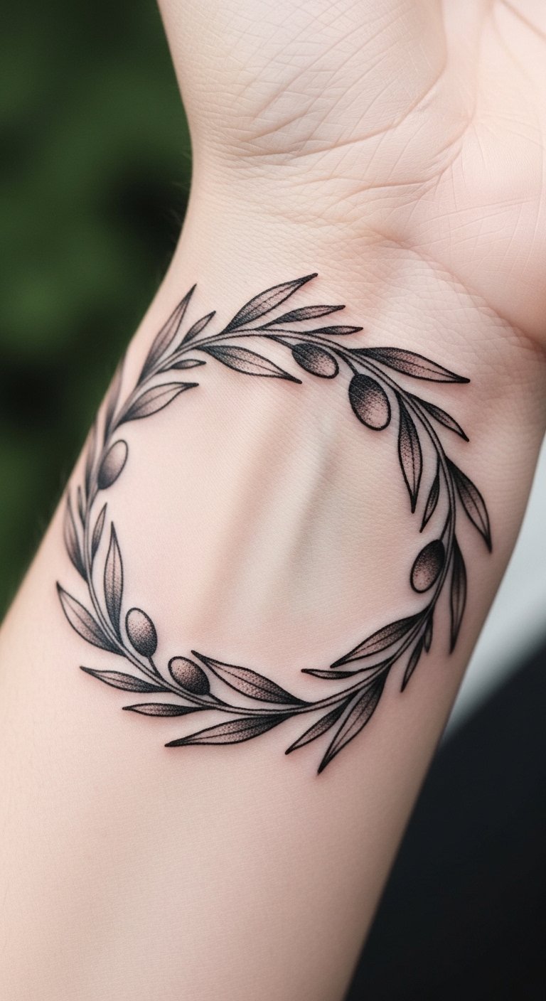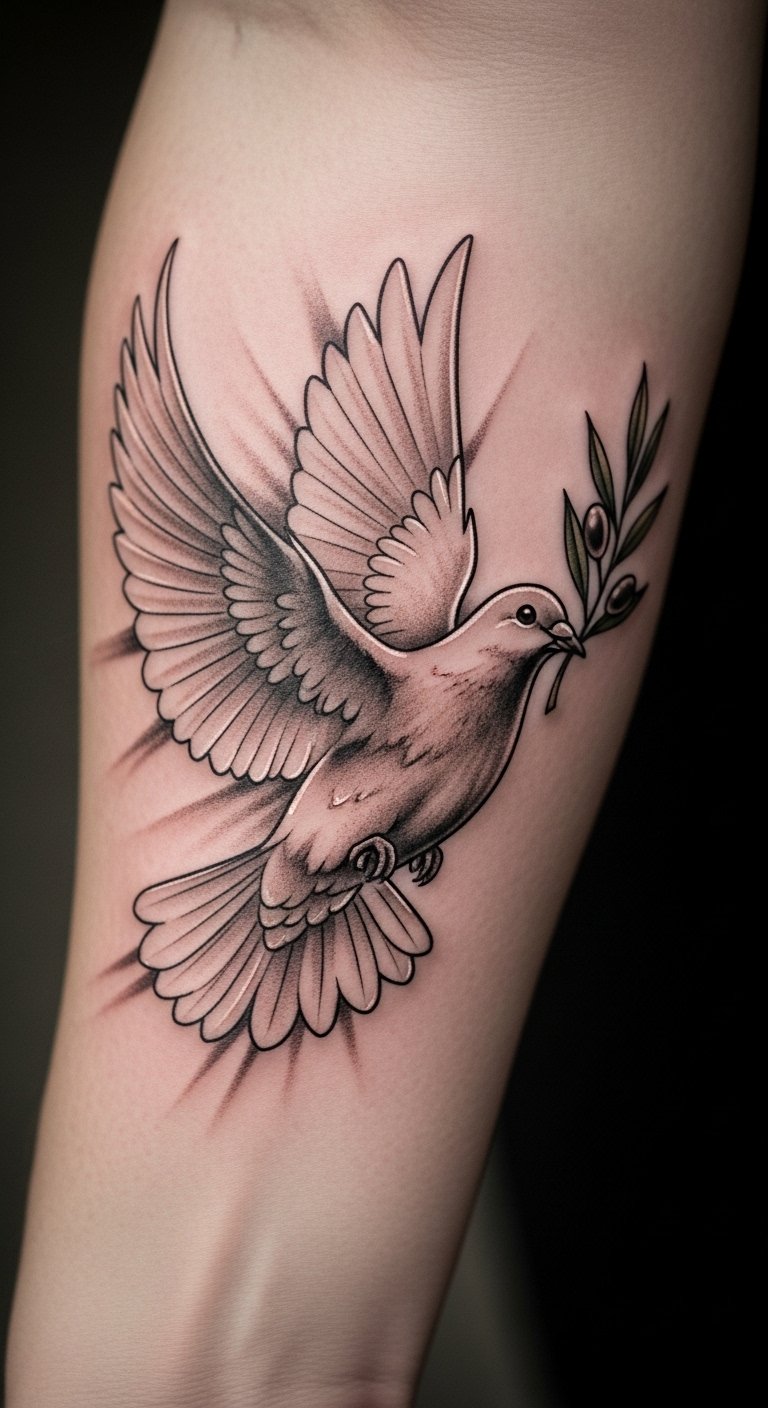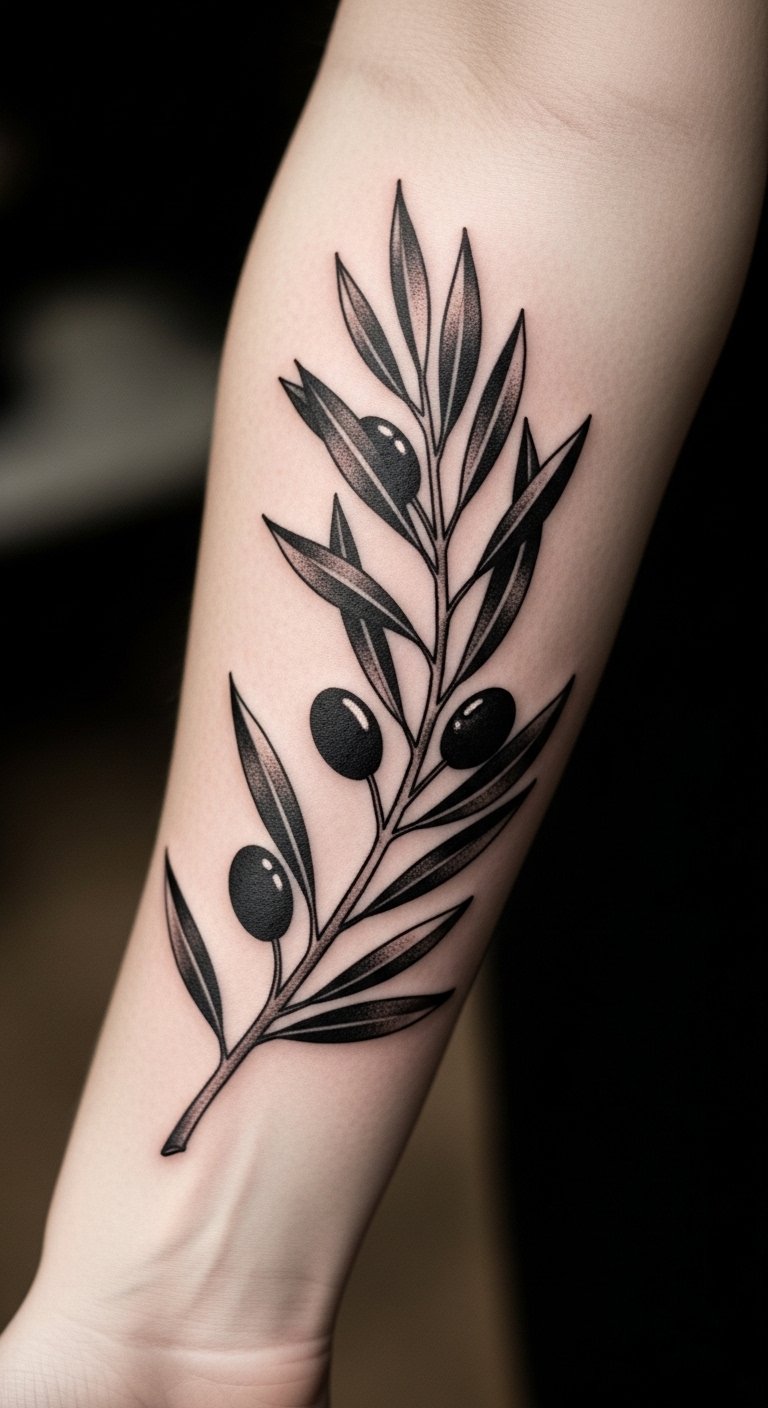 Think of a clean, straightforward olive branch design. It’s perfect for first-timers or those wanting something subtle. This style uses basic lines to show peace and new beginnings.