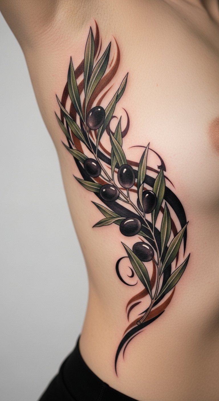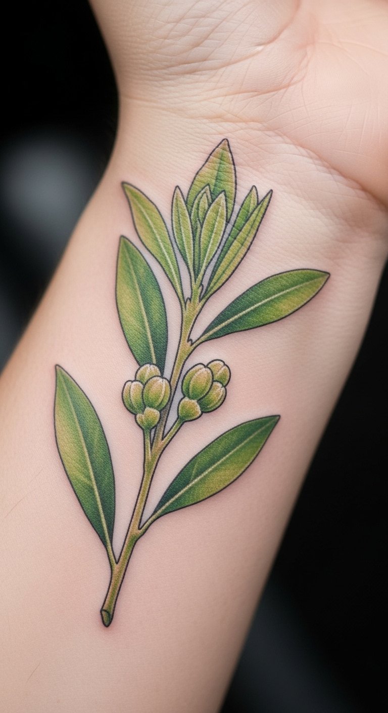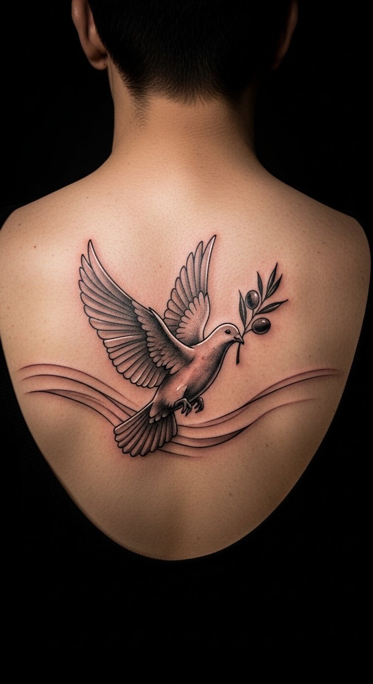 Think of a clean, straightforward olive branch design. It’s perfect for first-timers or those wanting something subtle. This style uses basic lines to show peace and new beginnings.