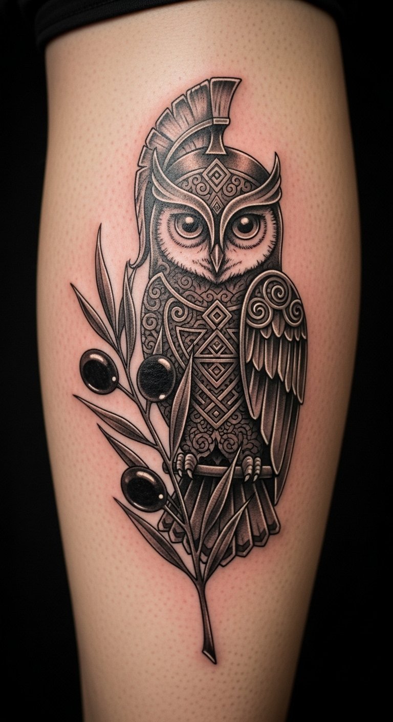 Envision an olive design honoring Athena, with elements like an owl for wisdom. It ties into old Greek tales of victory.