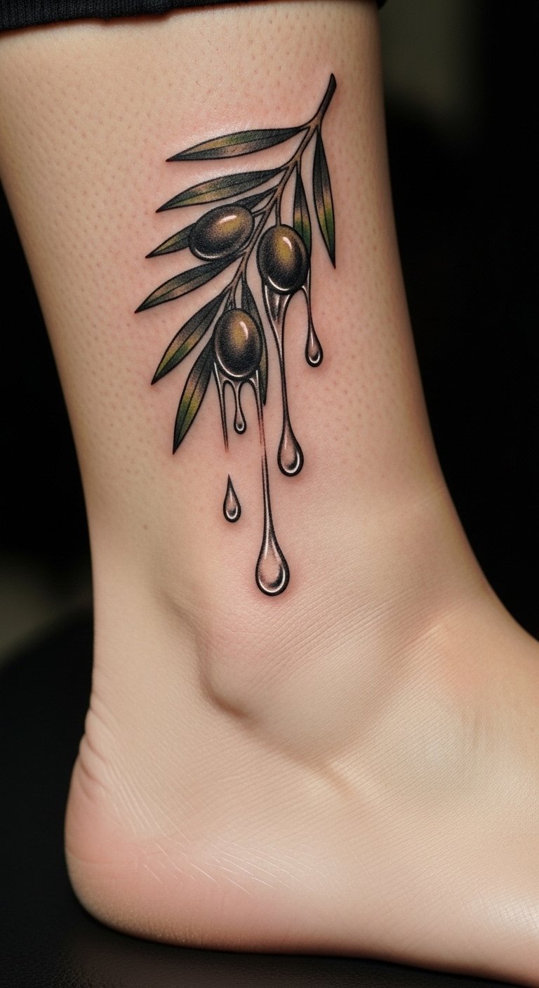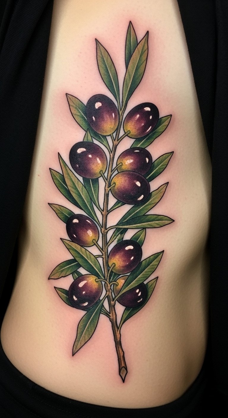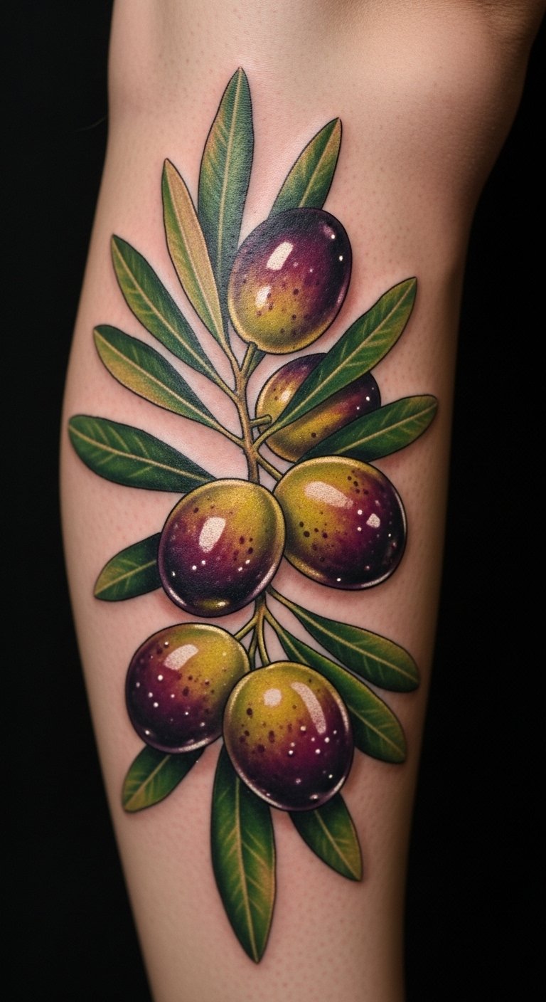 Realistic Olive Fruit Tattoo