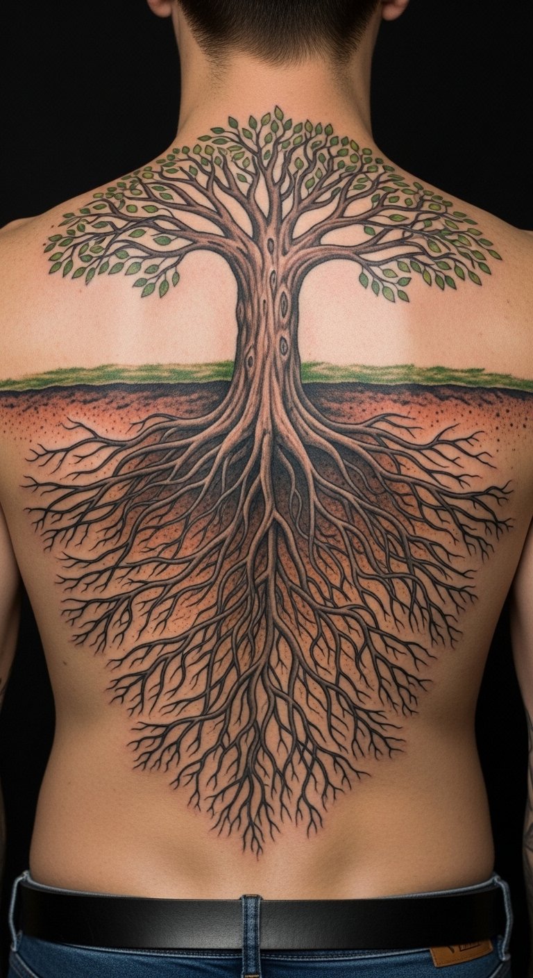 This tattoo works well on larger areas, like your back, for a story of enduring strength.