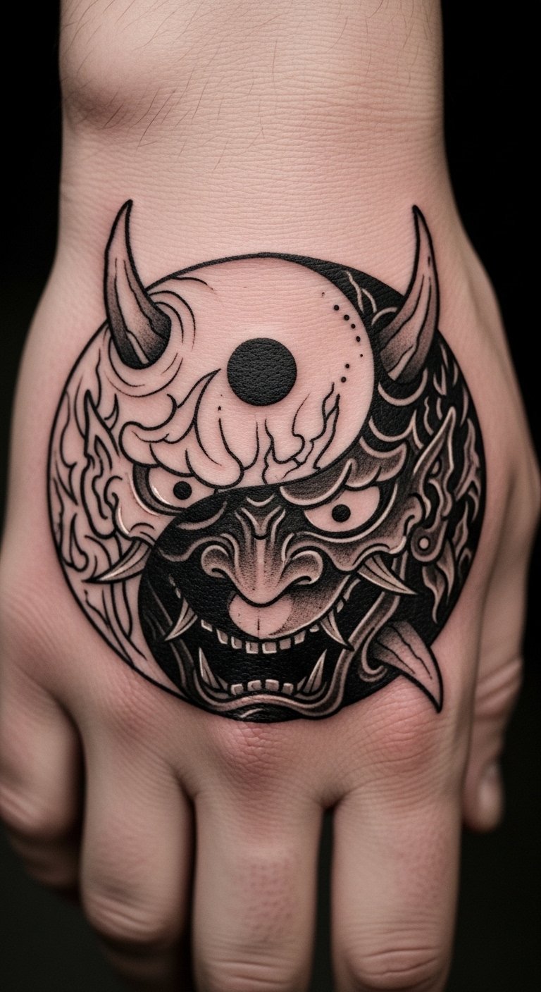 Yin-Yang with Oni shows harmony. Balance light and dark. Draw the circle simply. Use paper and pen. Search balanced designs online. Bold the yin-yang. Wear it on your hand. Test with symbols. Find harmony packages. It’s about even vibes.