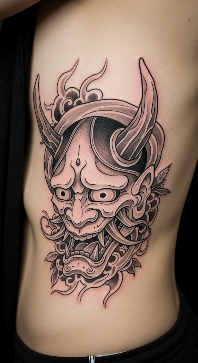 Inner harmony Oni promotes peace. Add wave patterns. Relax and sketch ideas. No extra cost. Search harmony tattoos affordable. Bold the waves. Place it on your side. Use calm drawings. Find peace packages. It’s a soothing choice.