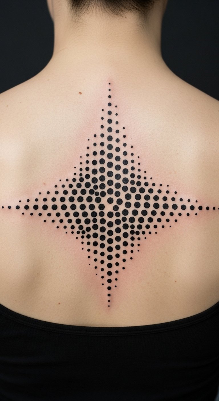 Dots that make your back look endless. Use a dot sticker set from a craft store to mock it up first—no cost involved. Back placement lets you show or hide as needed. Black dots keep it budget-friendly and impactful. Make it unique by spacing them to your back’s curve. Try punching holes in paper as a DIY preview. Artists often price these low for their simplicity. The depth effect surprises with just placement. Use home remedies like aloe for healing. It adds mystery to shirts or swimsuits.